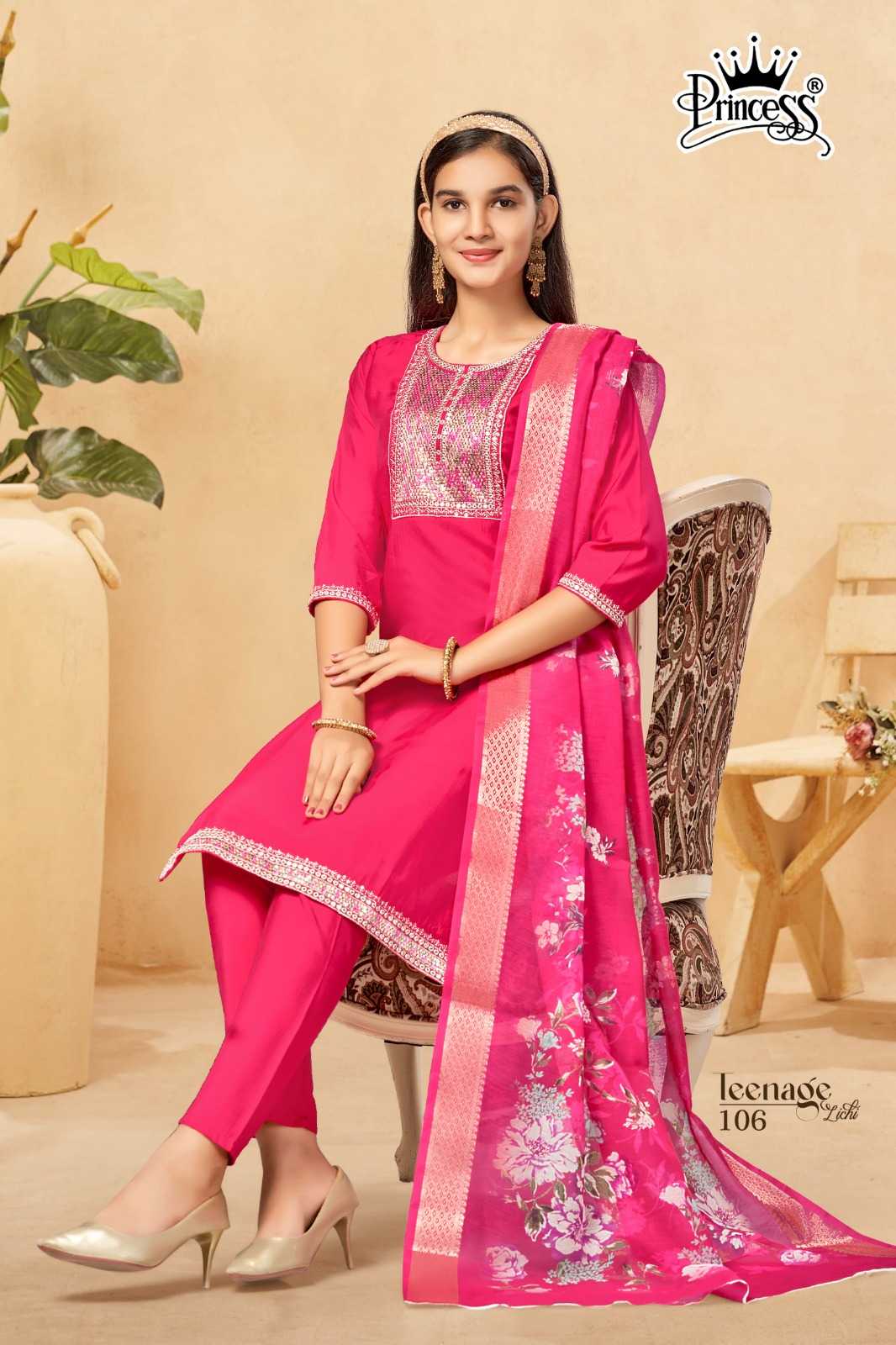 new teenage lichi by princess roman silk trendy full stitch kids dress