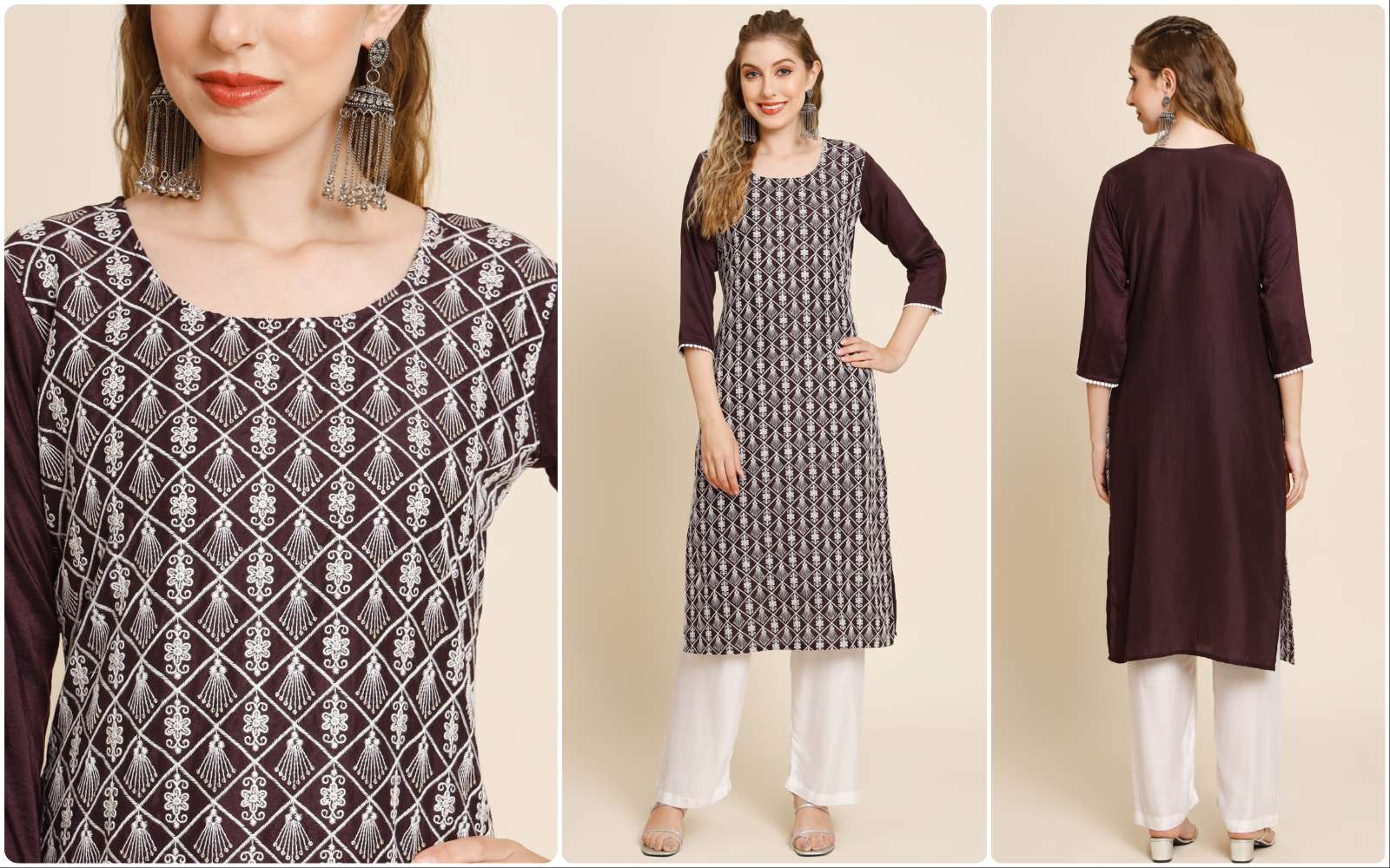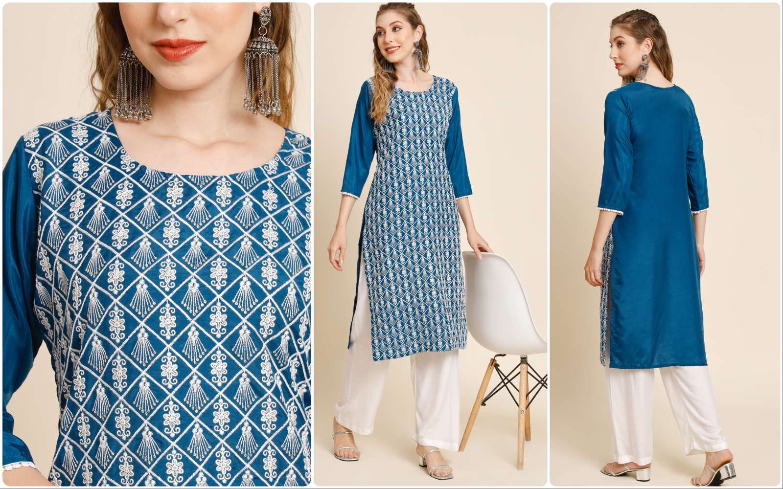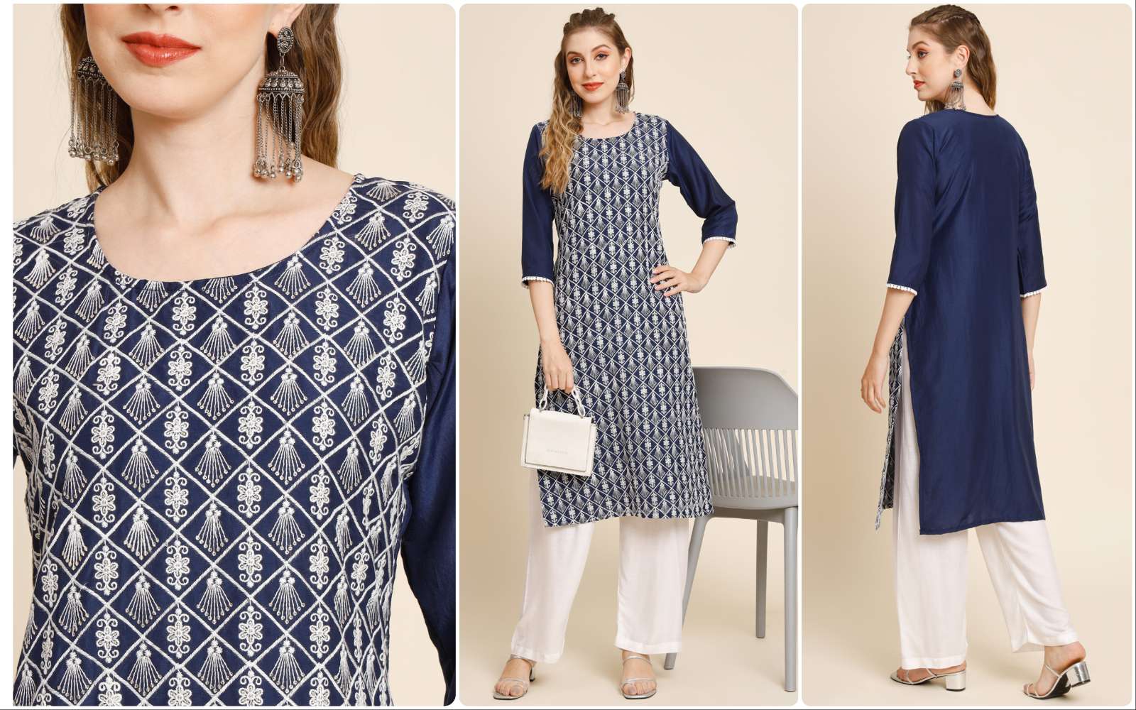 Nexon Soft Georgette Kurta with Embroidery Work Straight Shape Three Quarter Sleeves Round Neck |