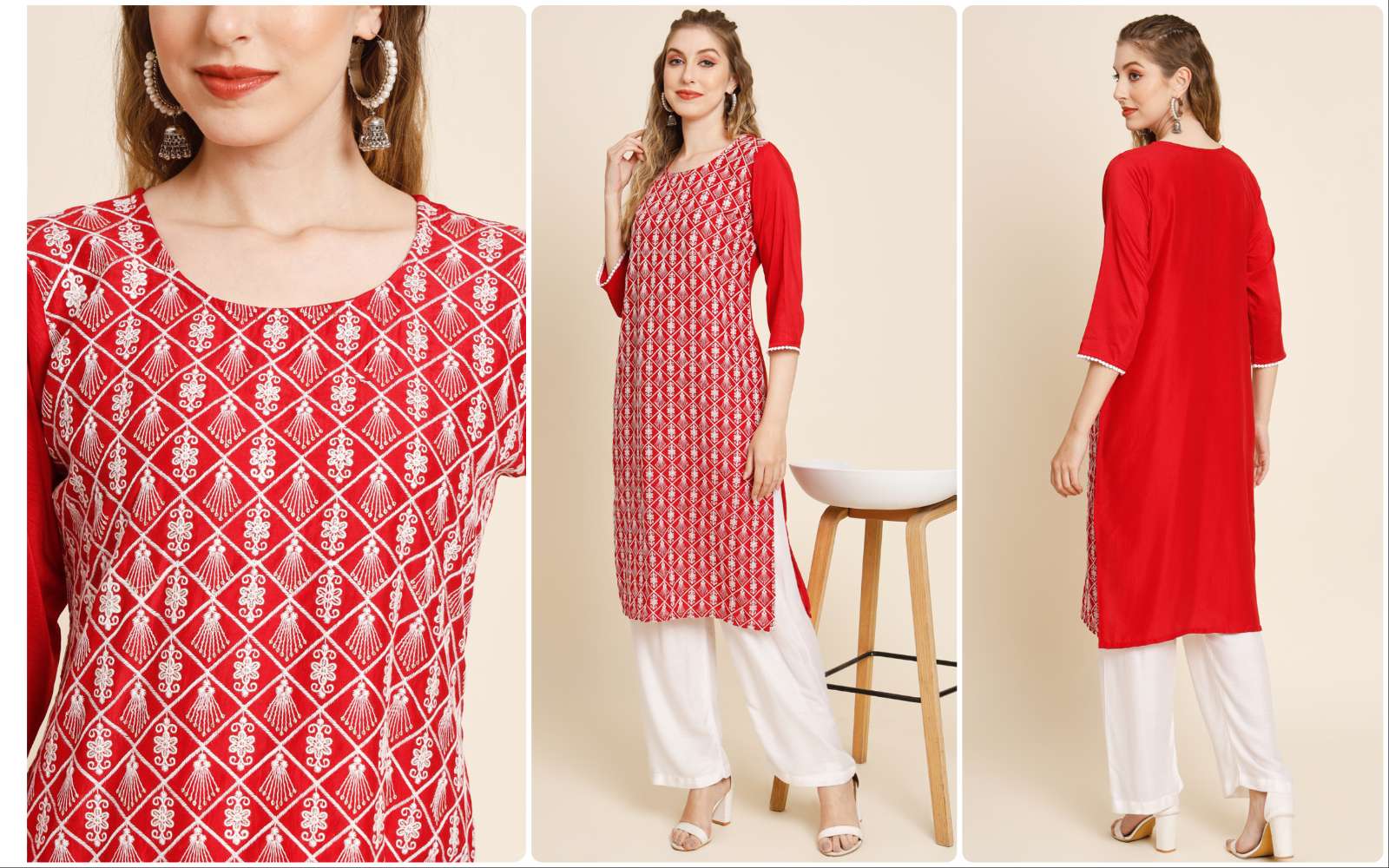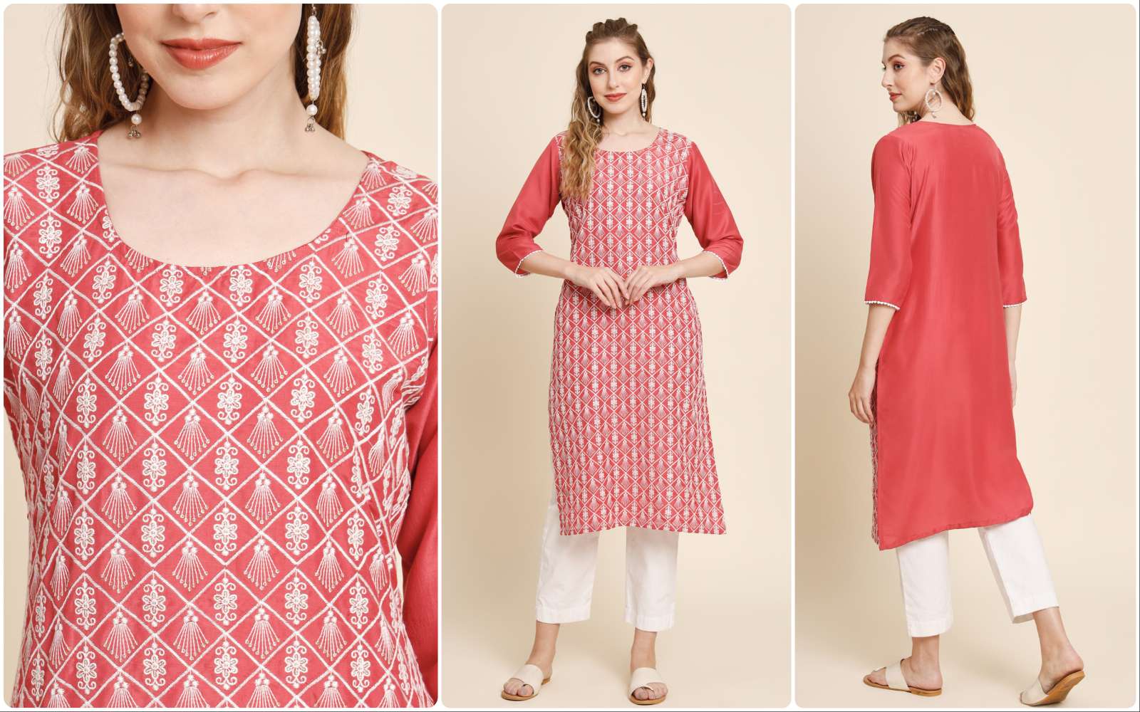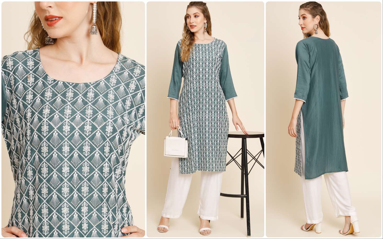 Nexon Soft Georgette Kurta with Embroidery Work Straight Shape Three Quarter Sleeves Round Neck |