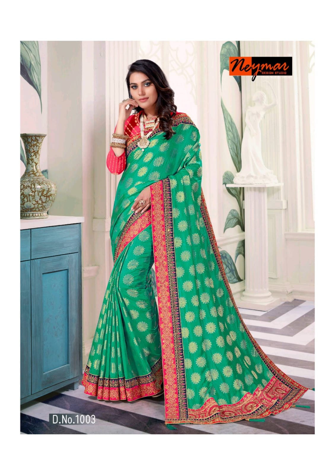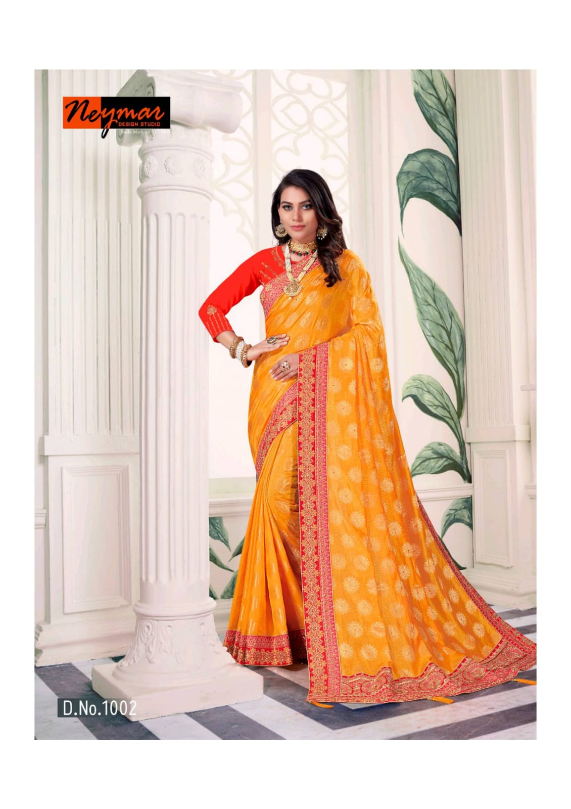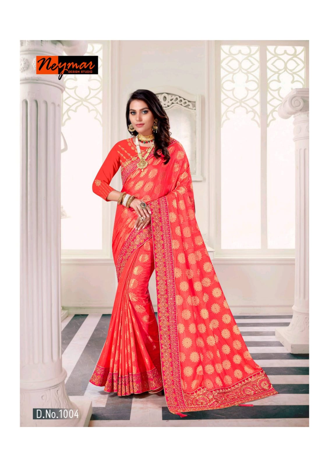 We are launching our new Saree Catalog Brand - NEYMAR DESIGN STUDIO. Catalog Name : BRIDAL LOOK Fabrics - Fancy * Set to set * Rate 1728/- only Pc - 04 GST 5 Percent Extra. Delivery 3-4 days Book your order now . |
