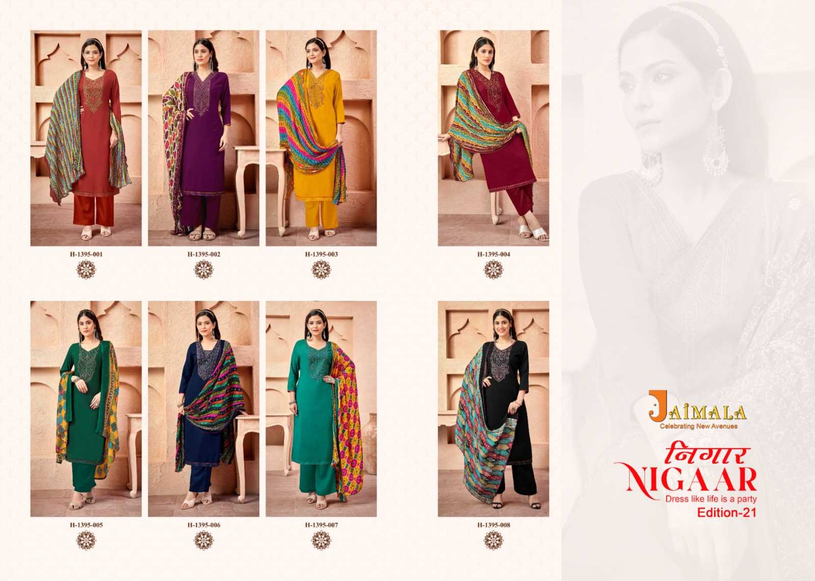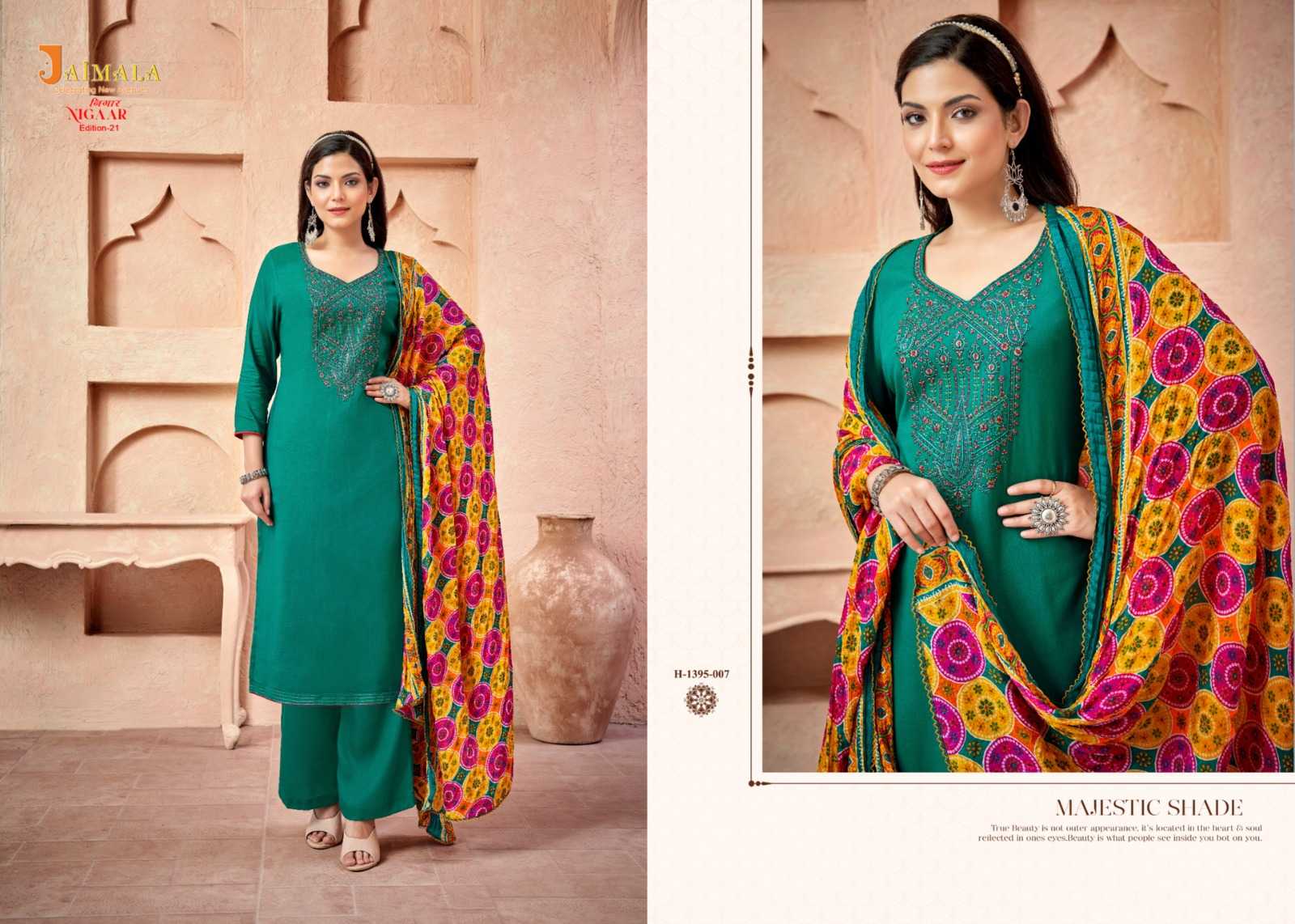 nigaar vol 21 by jaimala alok suit fancy work unstitch salwar kameez with bandhej cursh dupatta