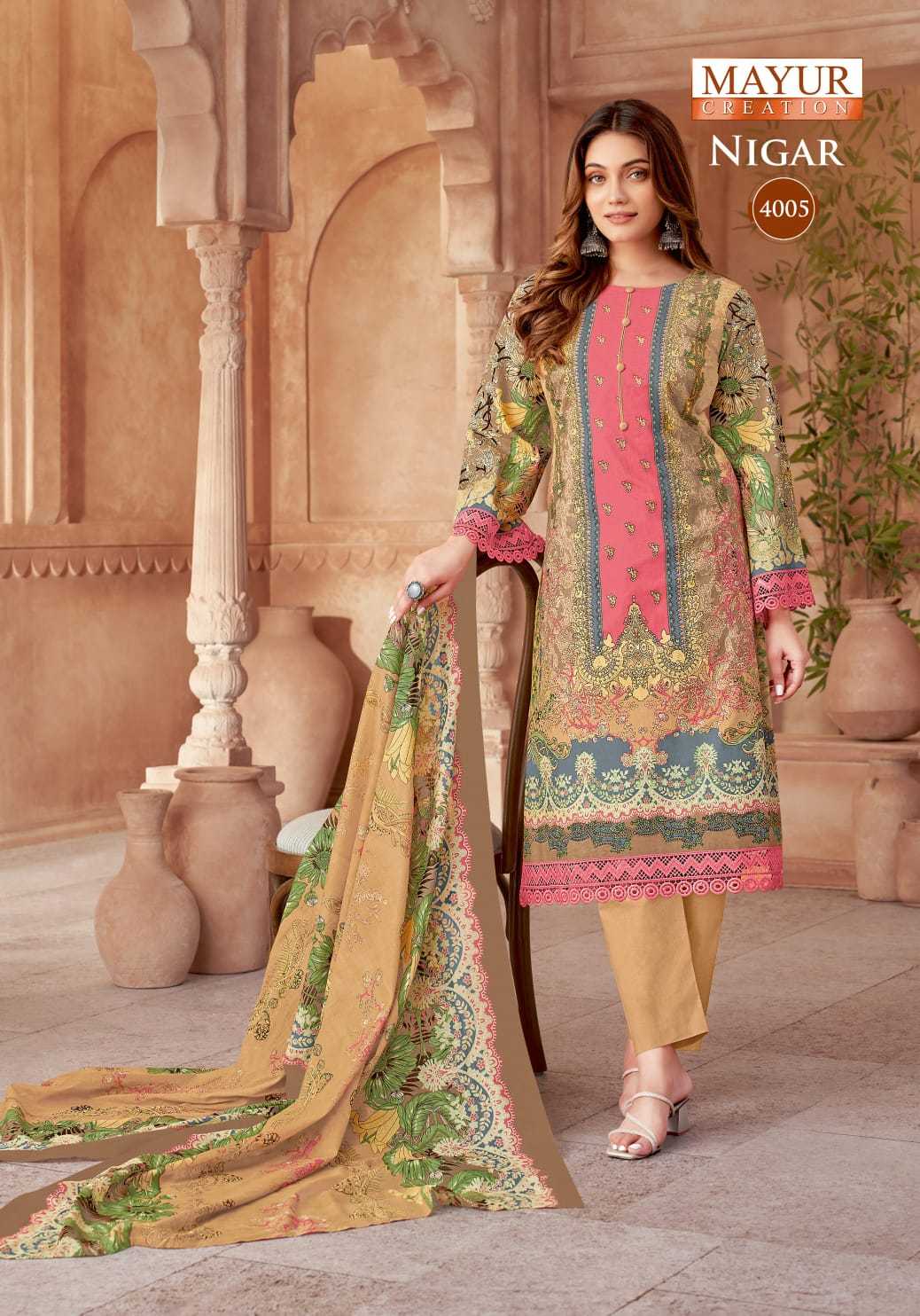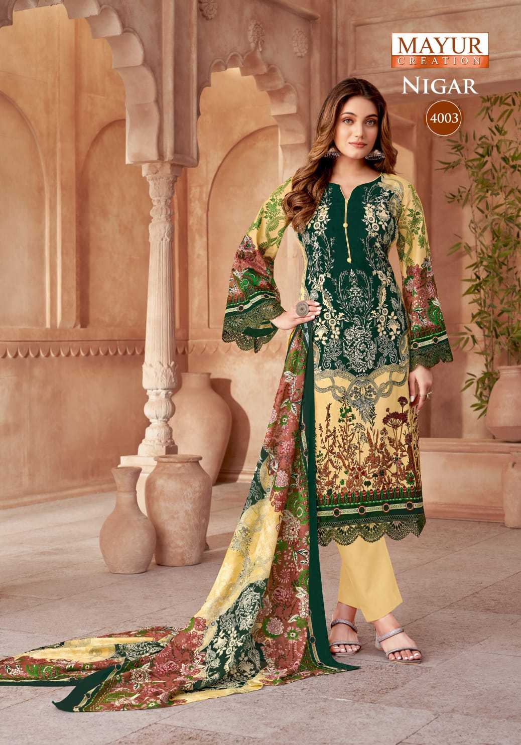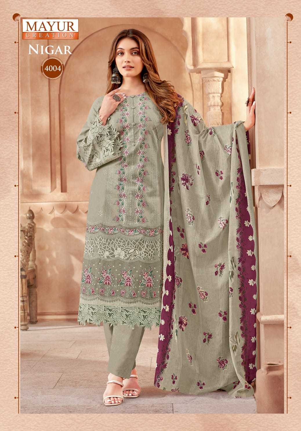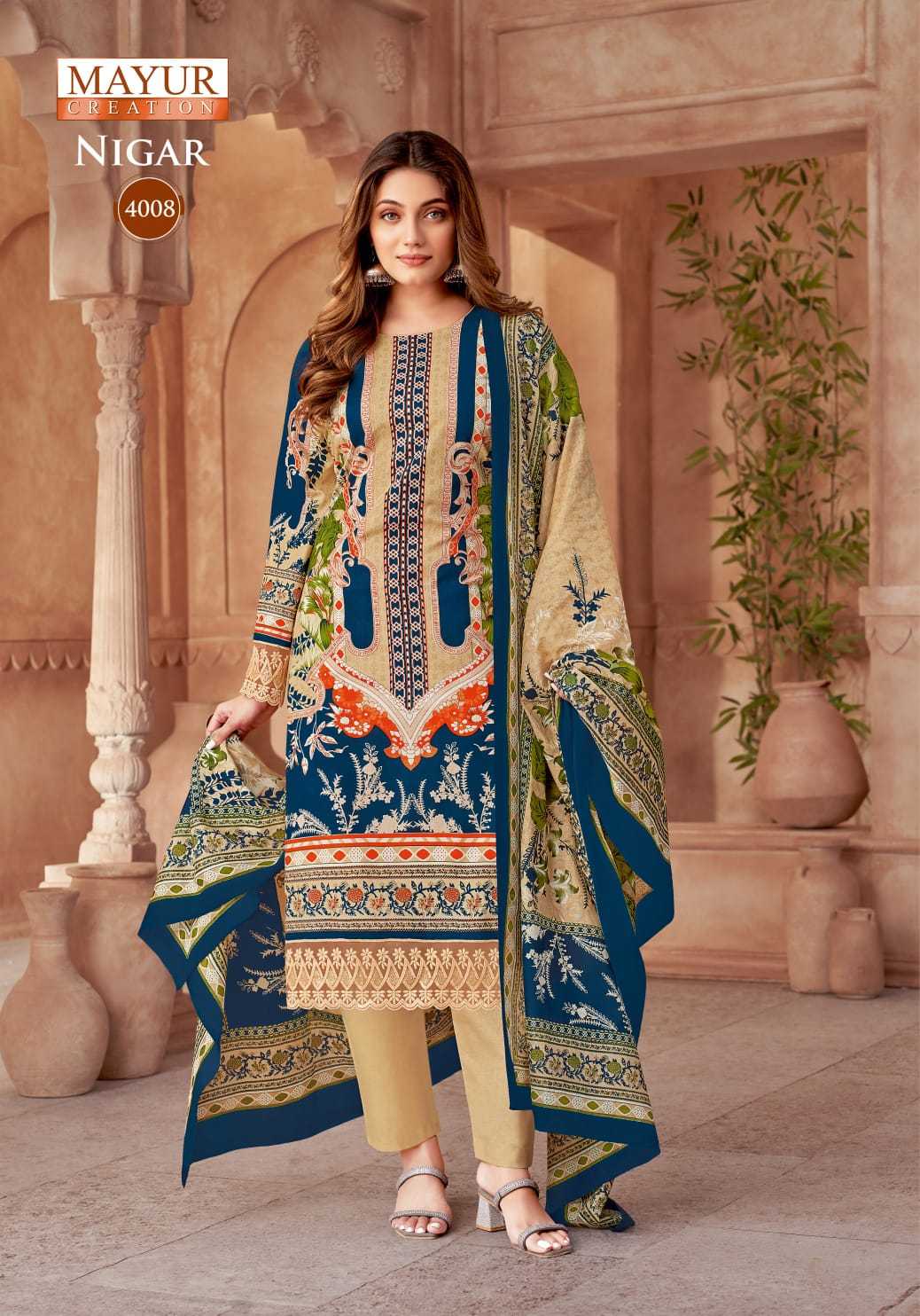 NIGAR VOL 4 by Mayur Creation Quality 125 gms fine quality Top 2.5 mtr Pouch packing only Design 8 Rate :- 370 Despatch tomorrow |