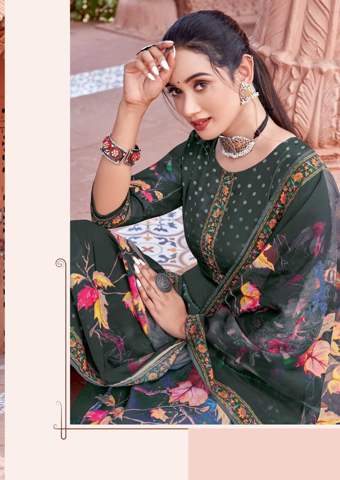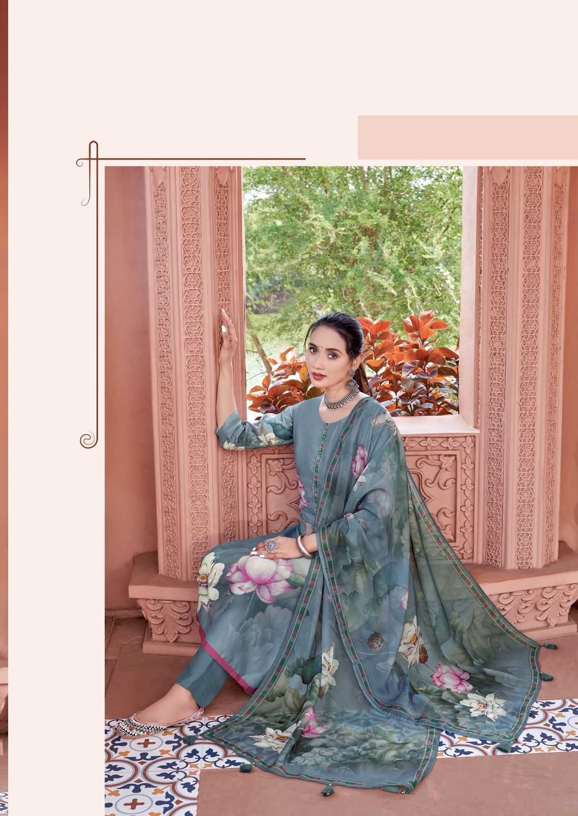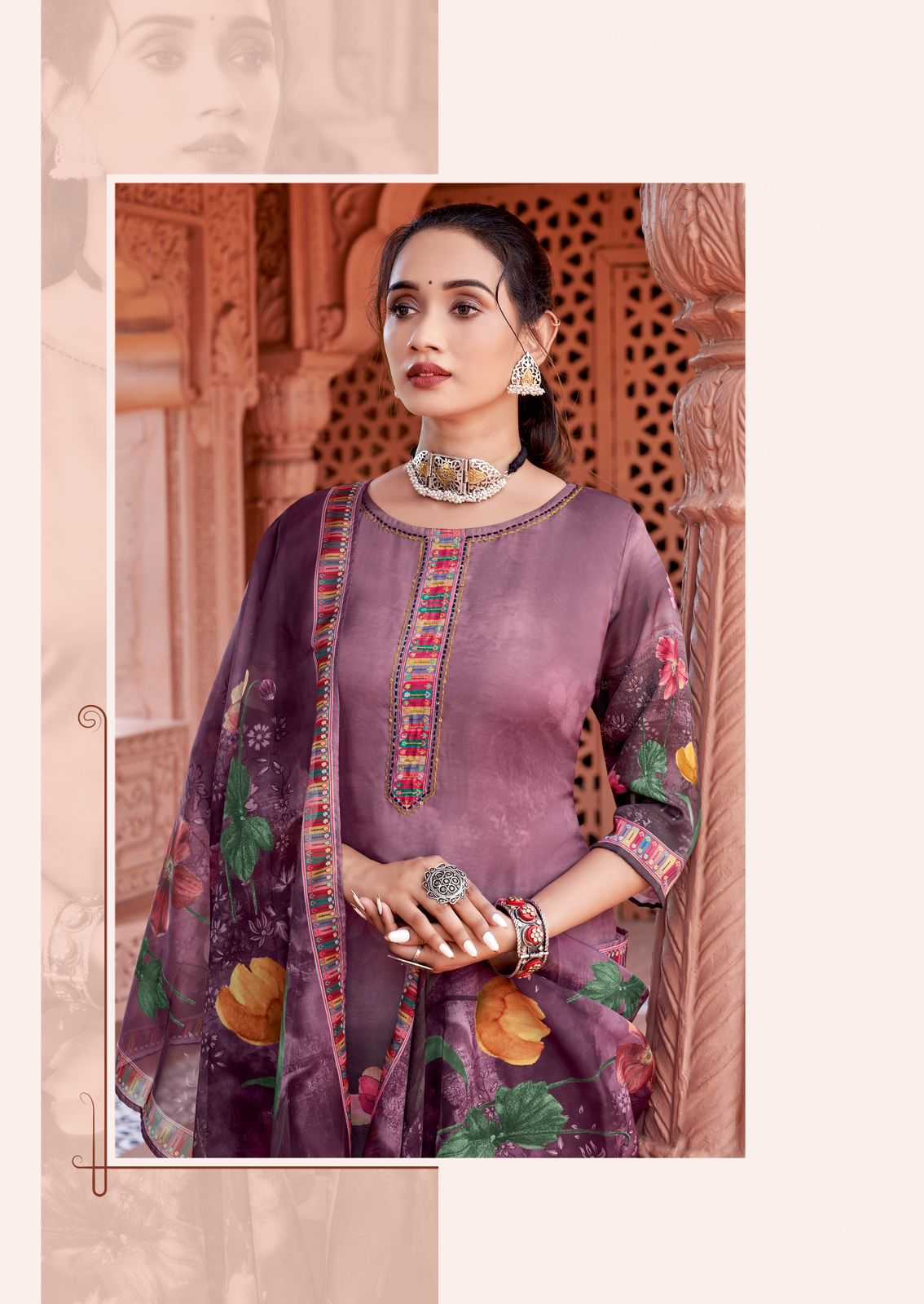 nihar by mittoo satin print thread & handwork full stitch pretty look 3pcs dress