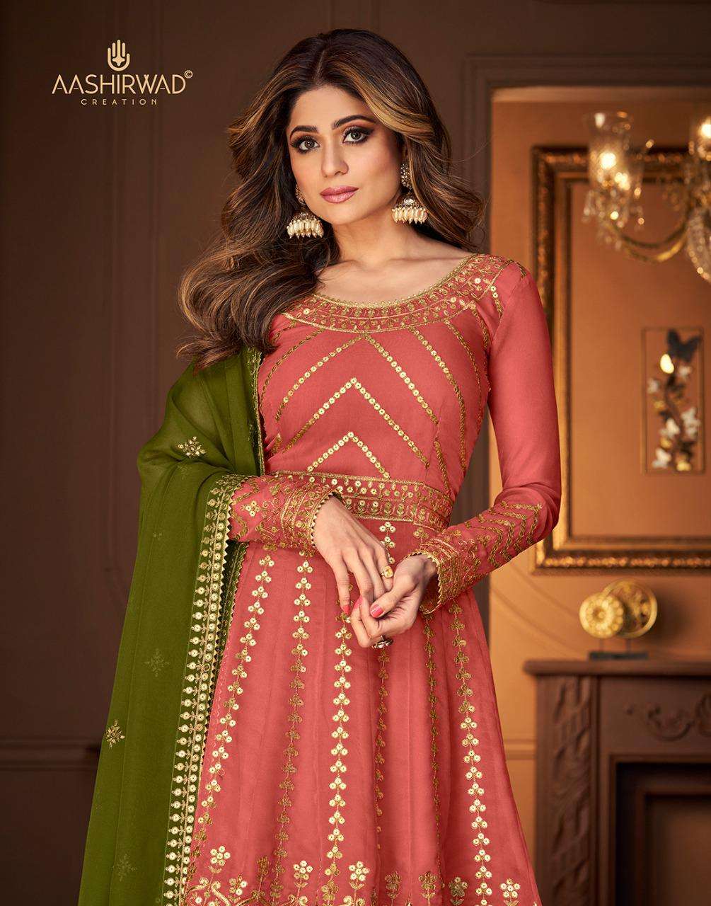 AASHIRWAD CREATION ➡️NIHARIKA⬅️ TOP-REAL GEORGETTE (free size stitch ) Price - 2399 |