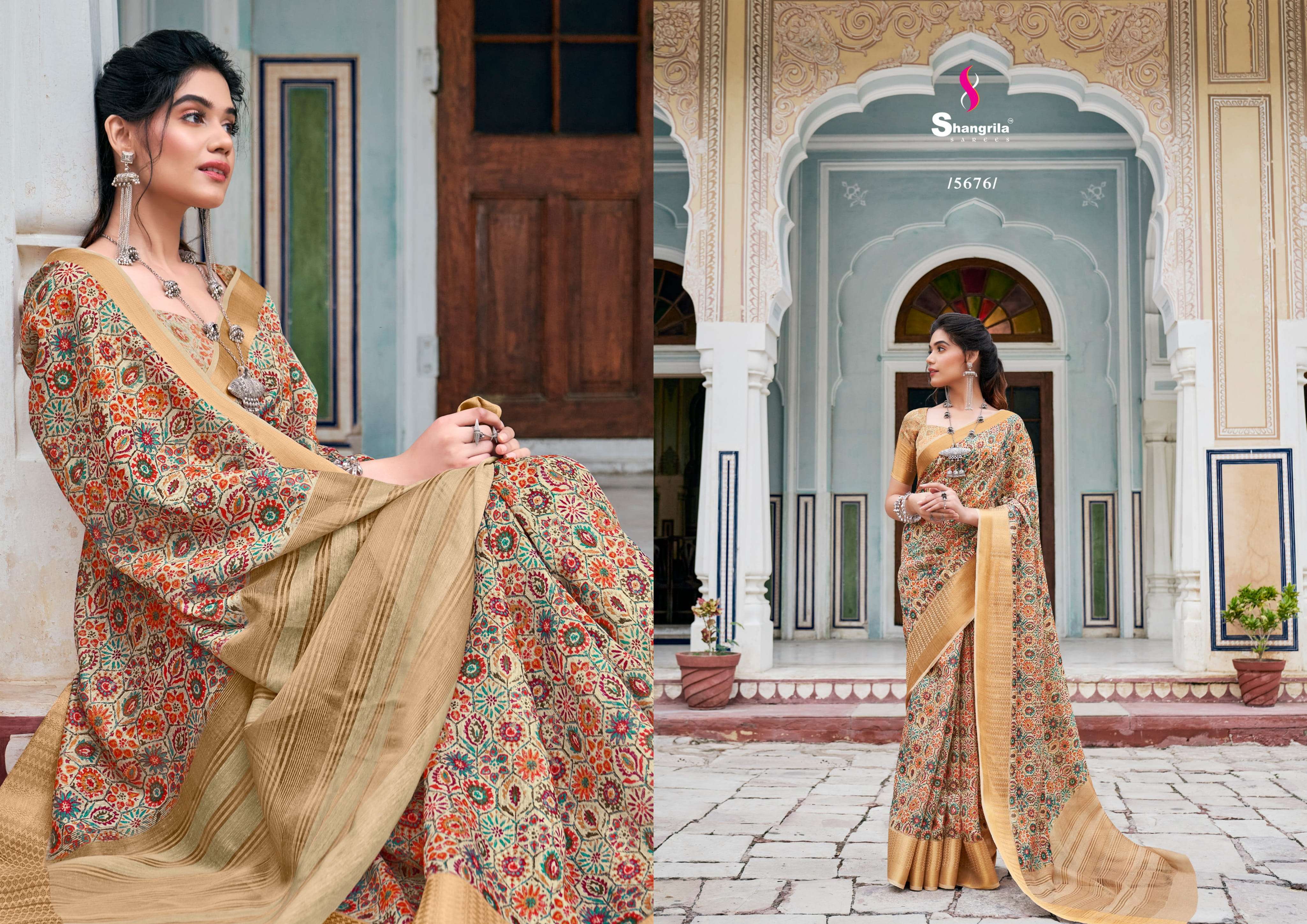 niharika digital vol 2 by shangrila soft linen with rich pallu saree best rate seller