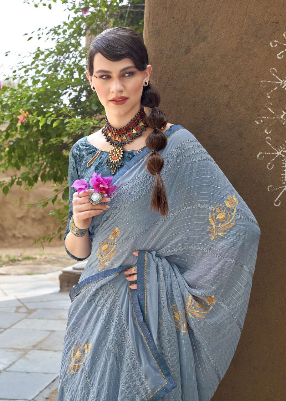 nischay by vallabhi elegant look embroidery designer saree exporter