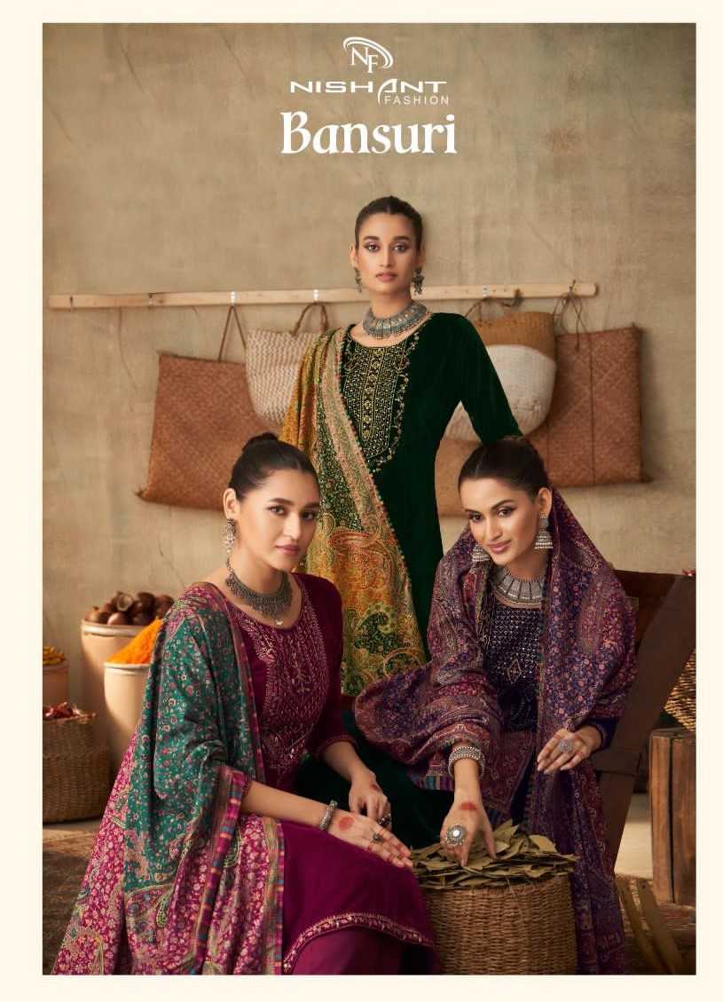 nishant fashion bansuri velvet winter wear unstitch salwar kameez with digital print dupatta