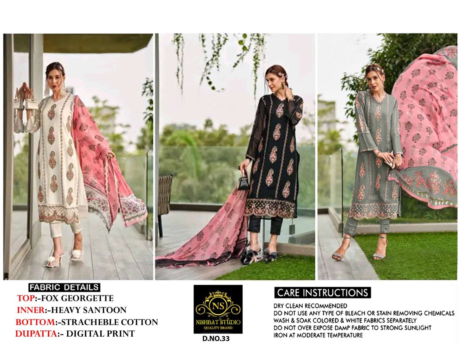 nishbat studio d no 33 georgette pakistani readymade 3 piece set