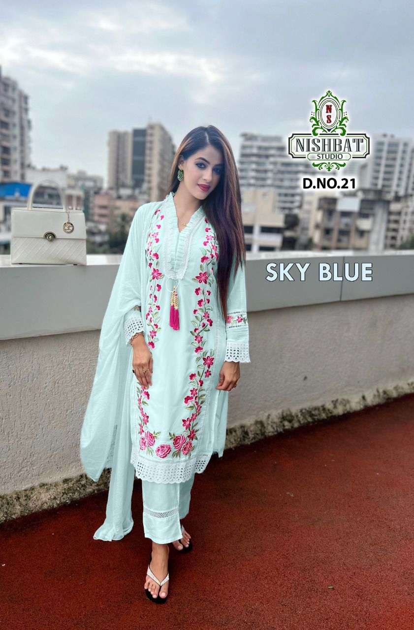 nishbat studio present d no 21 georgette pakistani readymade suits