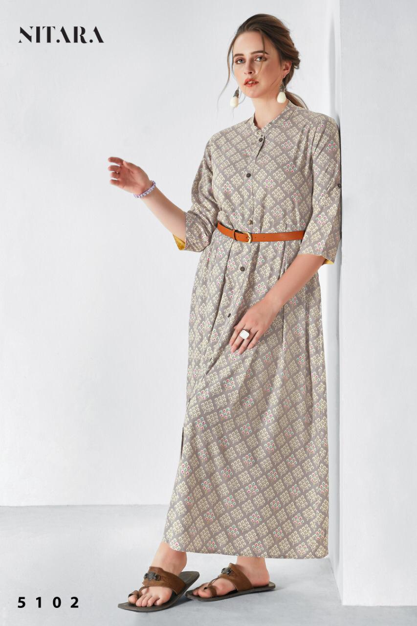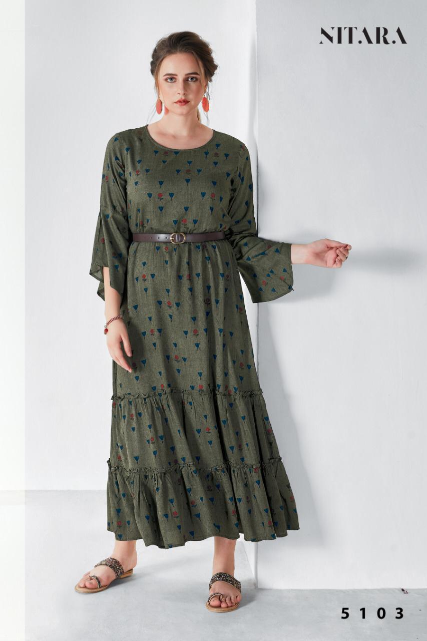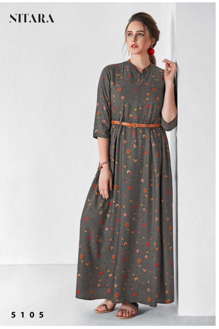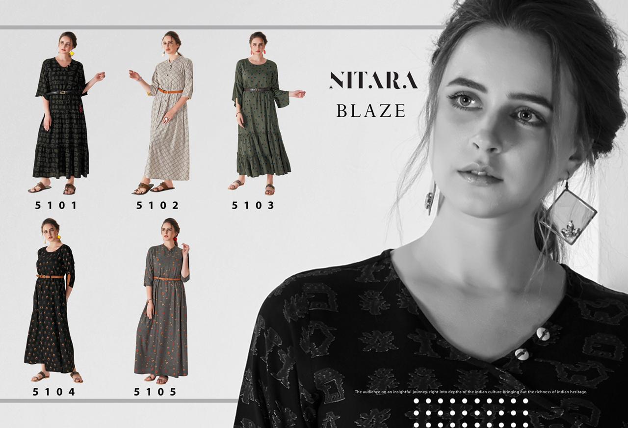 Nitara Blaze Rayon Long Gown Style Summer Wear Kurti With Mask Collection
