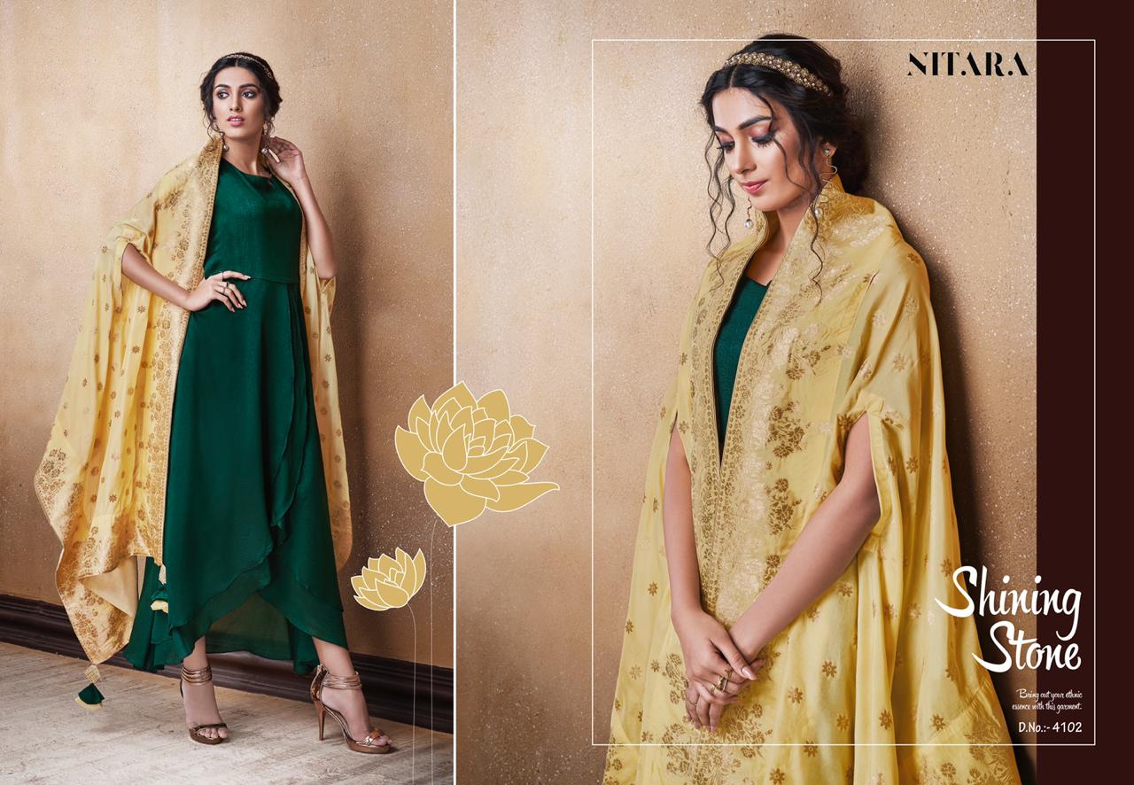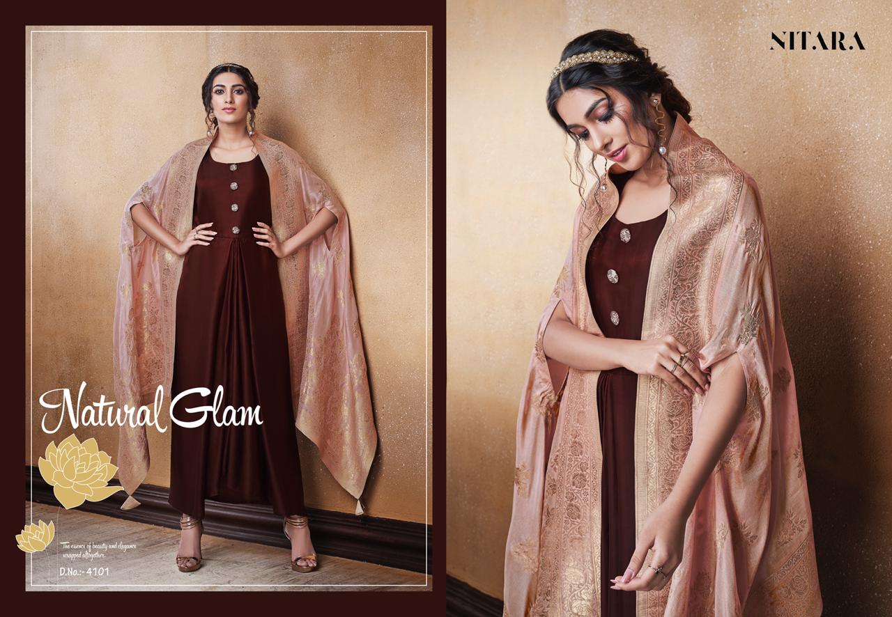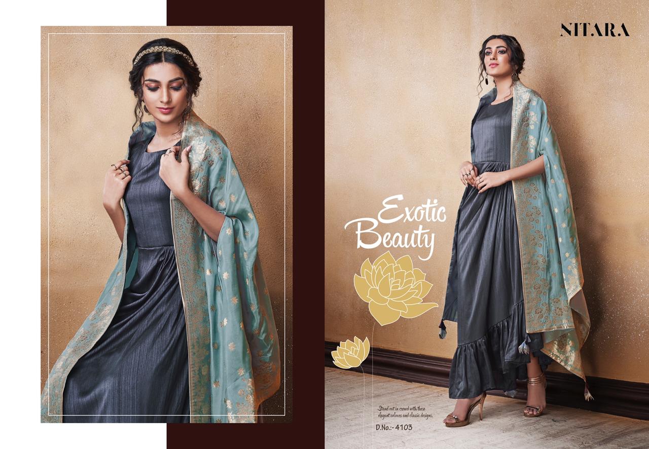Nitara Launch Lotus Silk Gown Party Wear Kurti And Dupatta Jackets Collection
