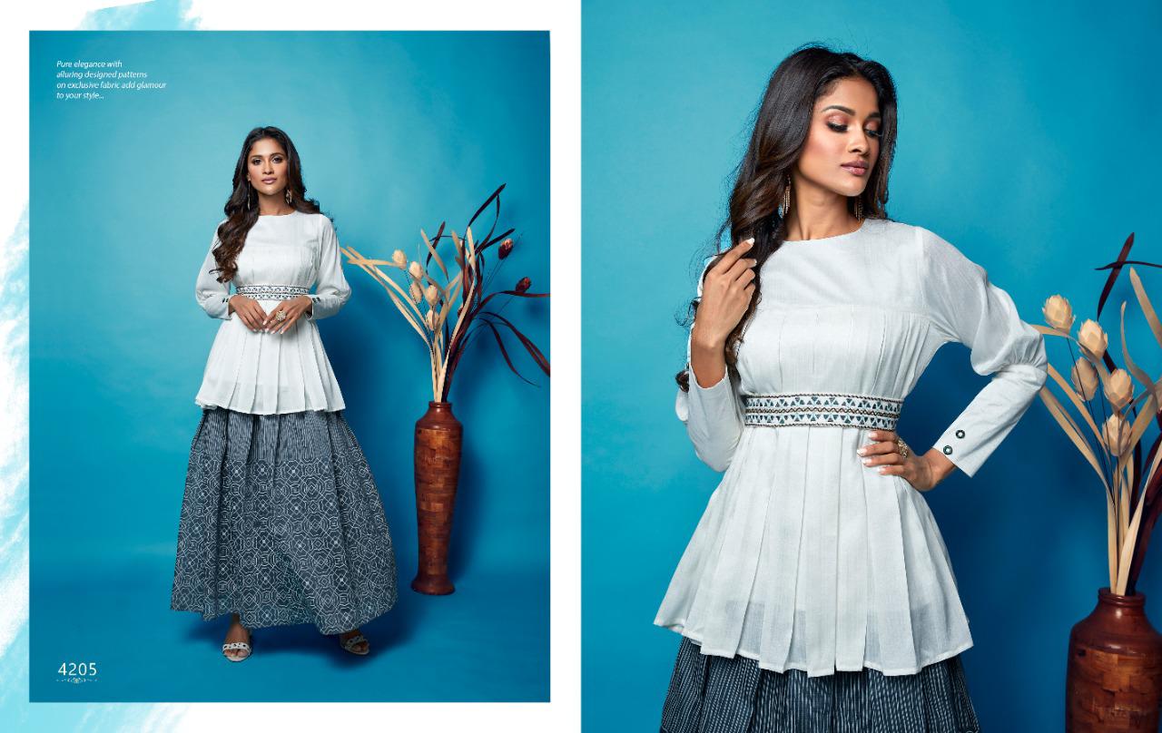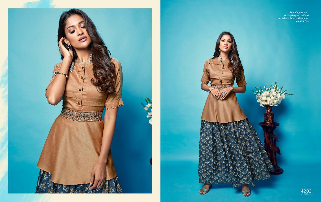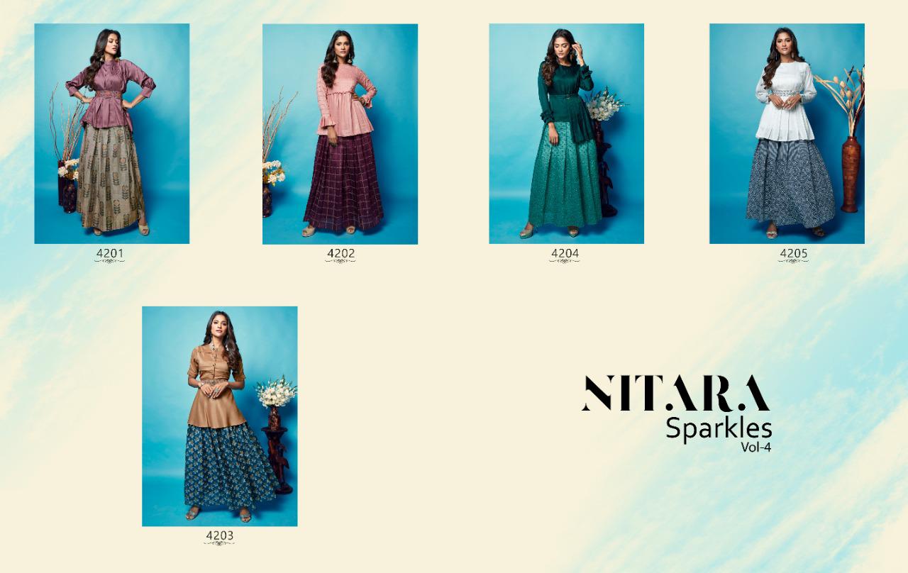 NITARA’s favourite collection for the festive season is back with it latest volume- Catlog Name - Sparkles-4 Fabric- *Chander Table Print Skirt, with Silk Top and Embroided Belts * No. Of Piece - 5 Avg. Price - 1170/- Per Piece Size Available - M,L,XL,XXL Only Full set. Dispatch - Tuesday , 08 , October |