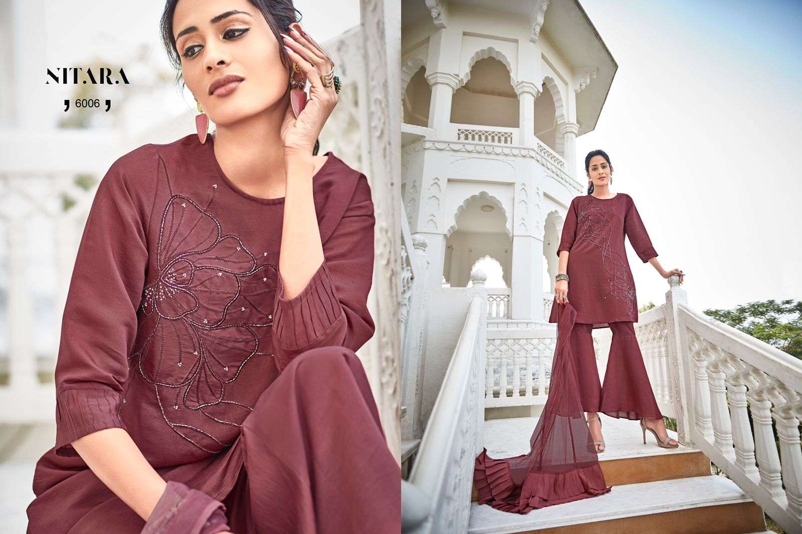 nitara present glory viscose silk readymade plazzo sharara style readymade suit