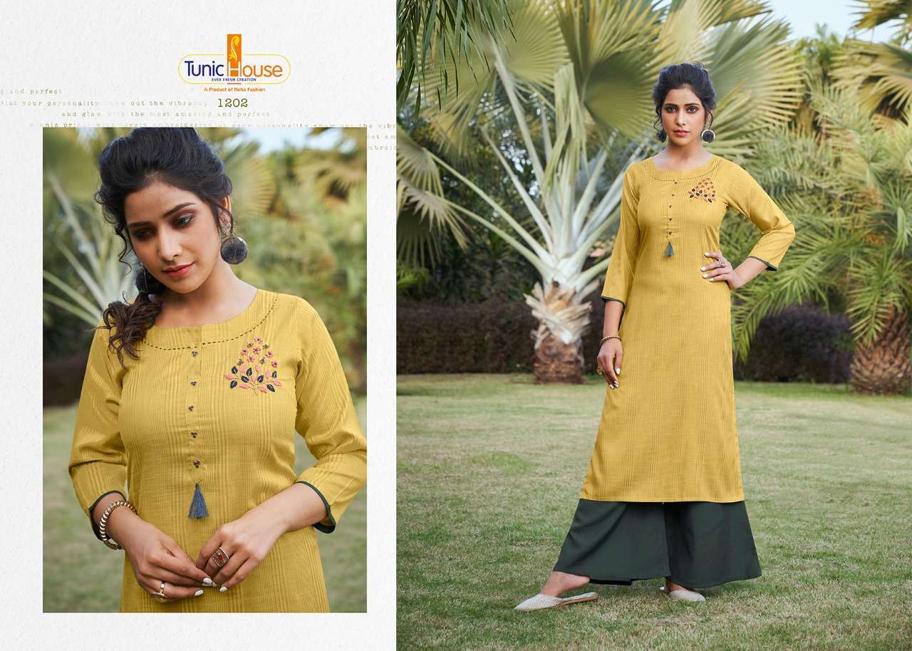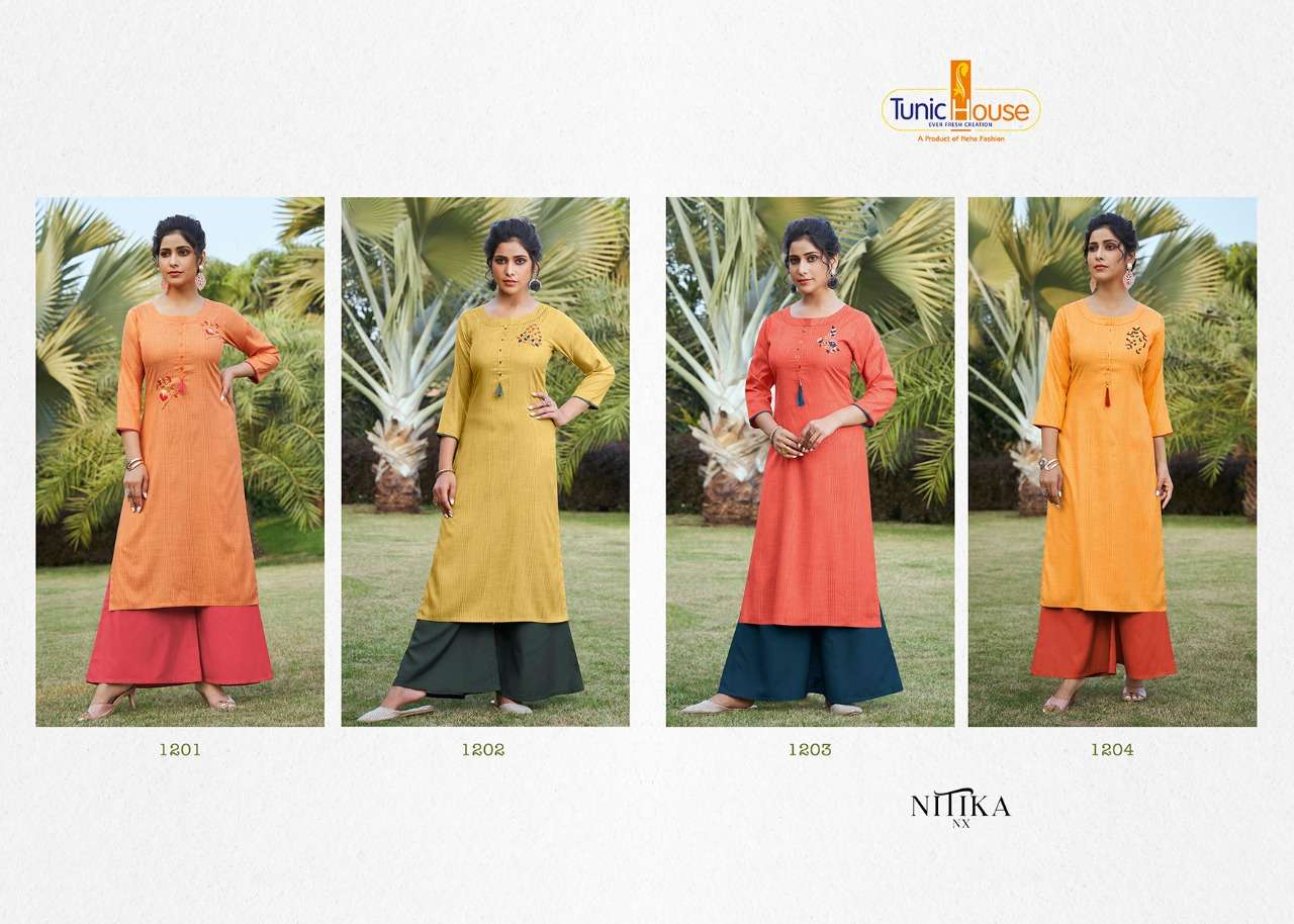 TUNIC HOUSE      Presents New Catalogs             NITIKA - NX  Fancy Hand Work Kurti FABRIC  :-  VISCOUS RAYON PATERN SIZE.  :-   M - L - XL - XXL - 3XL RATE :-  499/- Gst-5%extra DESIGN :- 4 Set To Set DISPATCH :- READY TO SHIP |