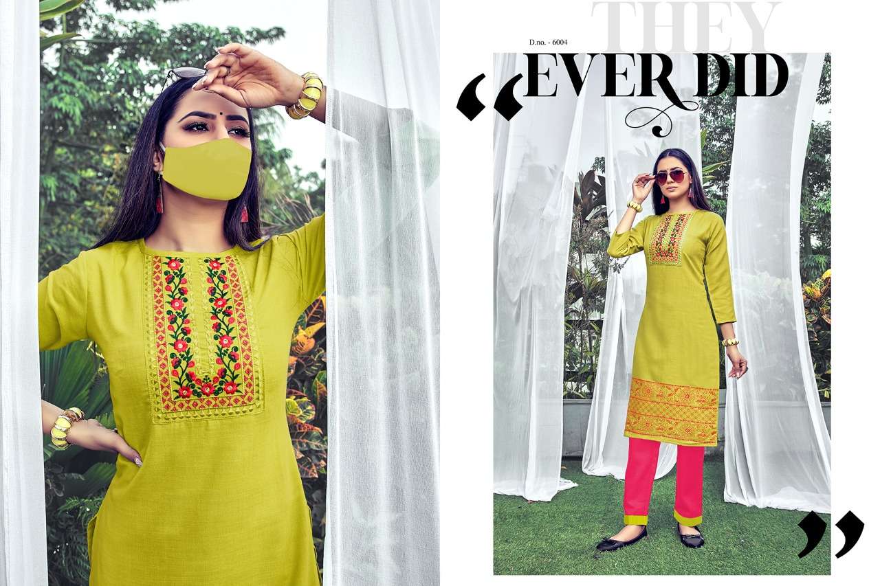 nitisha nx chingari vol 6 cotton slub regular wear kurti with matching mask