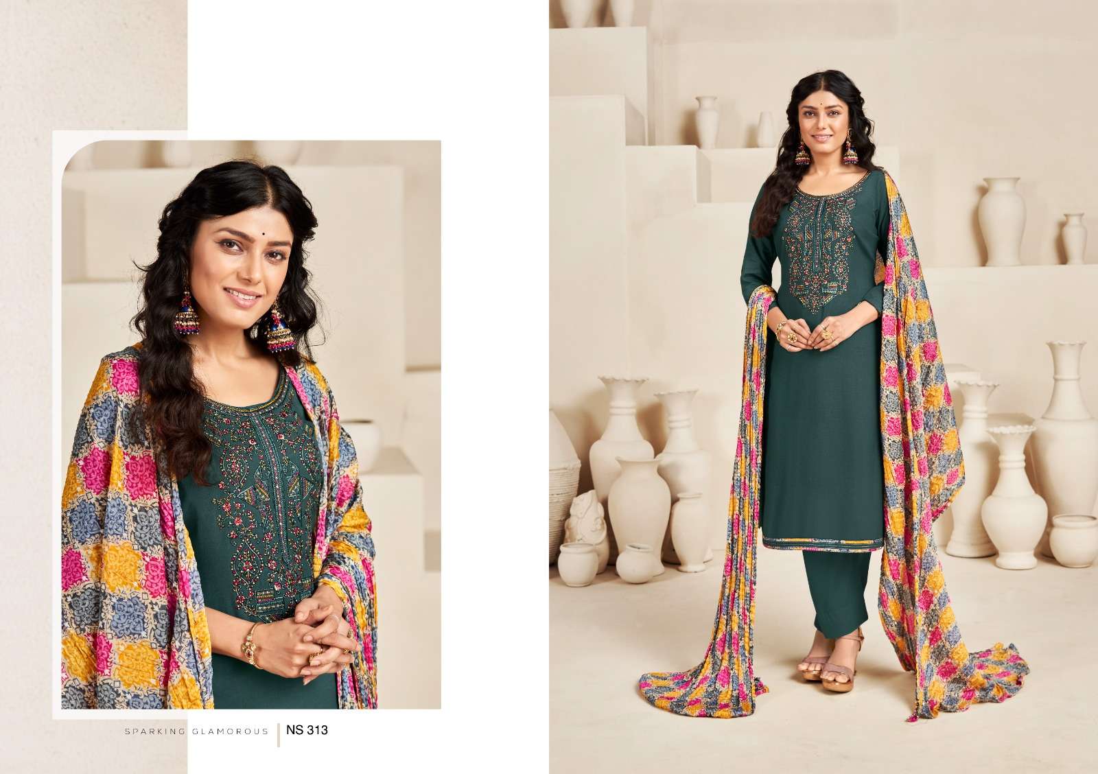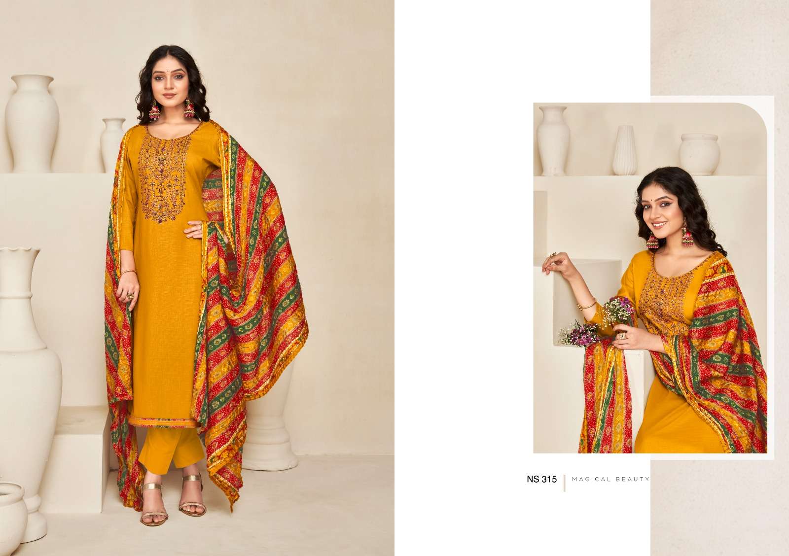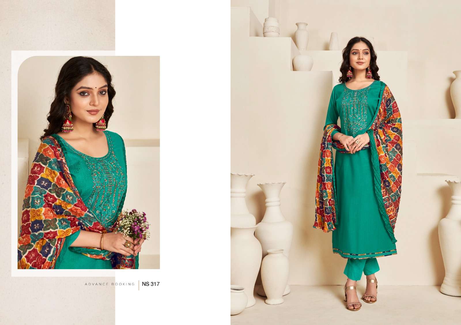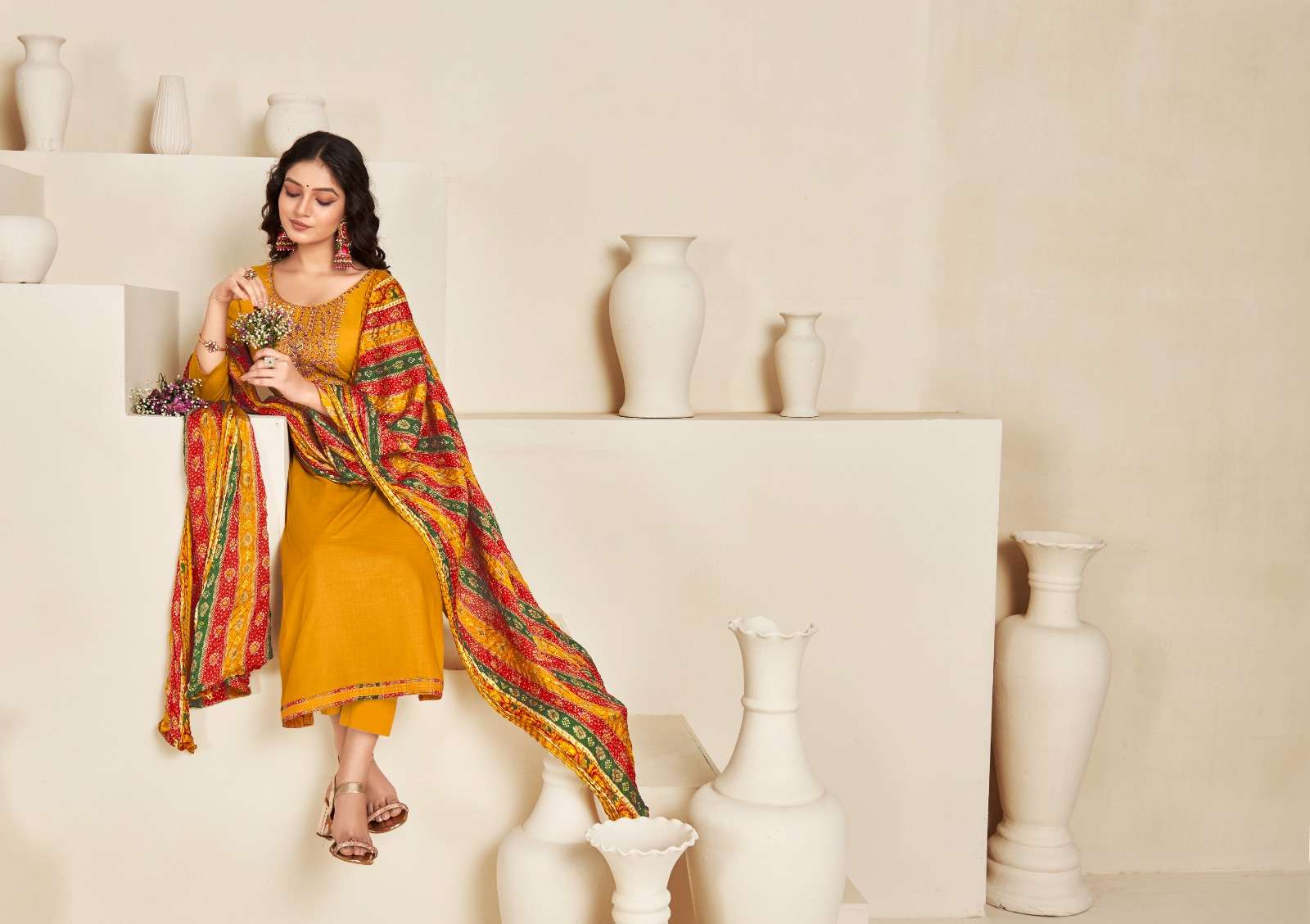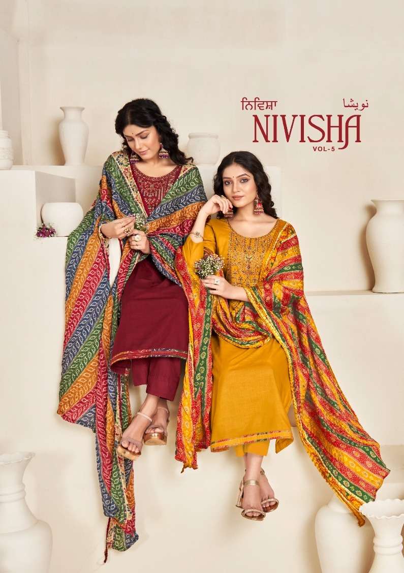 nivisha vol 5 by levisha fancy designer salwar kameez material with bandhej crush dupatta
