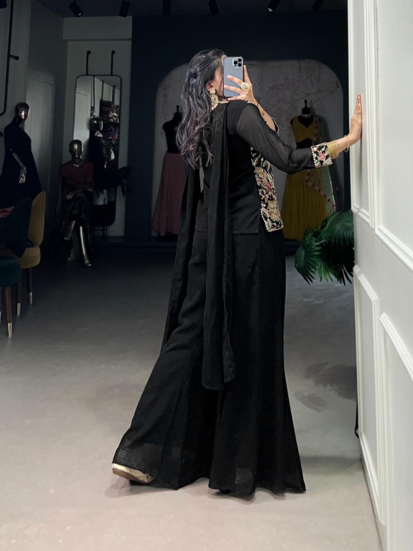 nnk3041 georgette readymade elegance plazzo kurti with dupatta