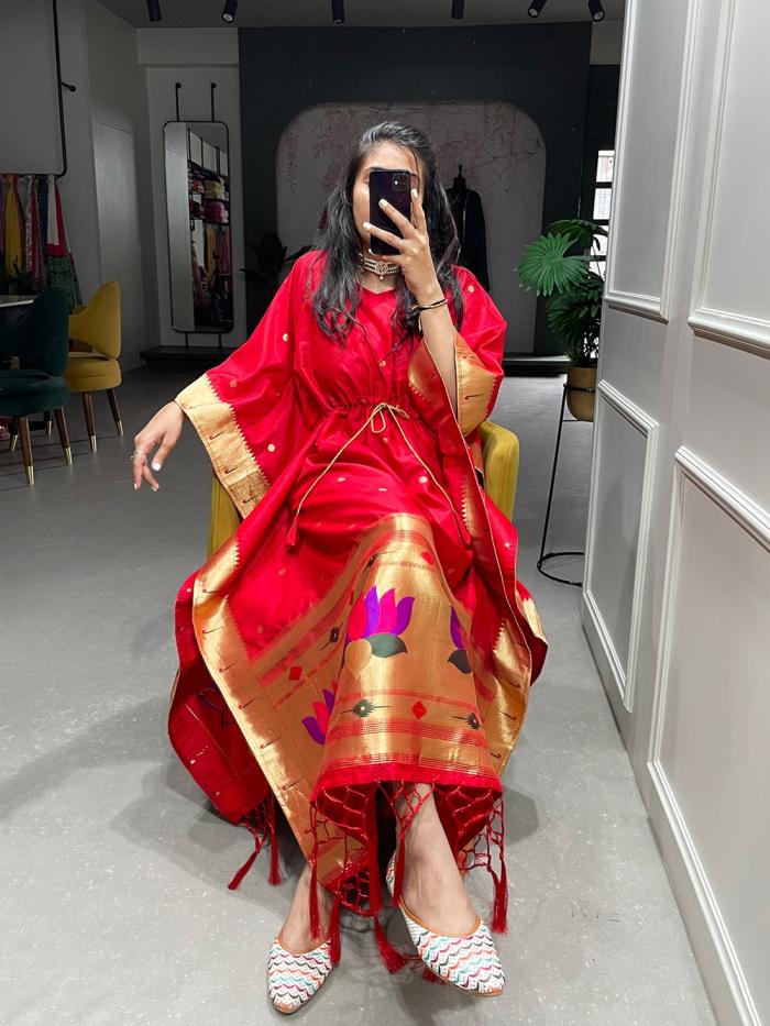 🌷Jacquard Kaftan Collection🌷 get traditional touch to your adoring this paithni kaftan is here to win hearts!🖤 NNK3803RED Kaftan(Stitched) Package Contain : Kaftan 👉🏿Weight : 0.370 kg Rate : 799/*- |