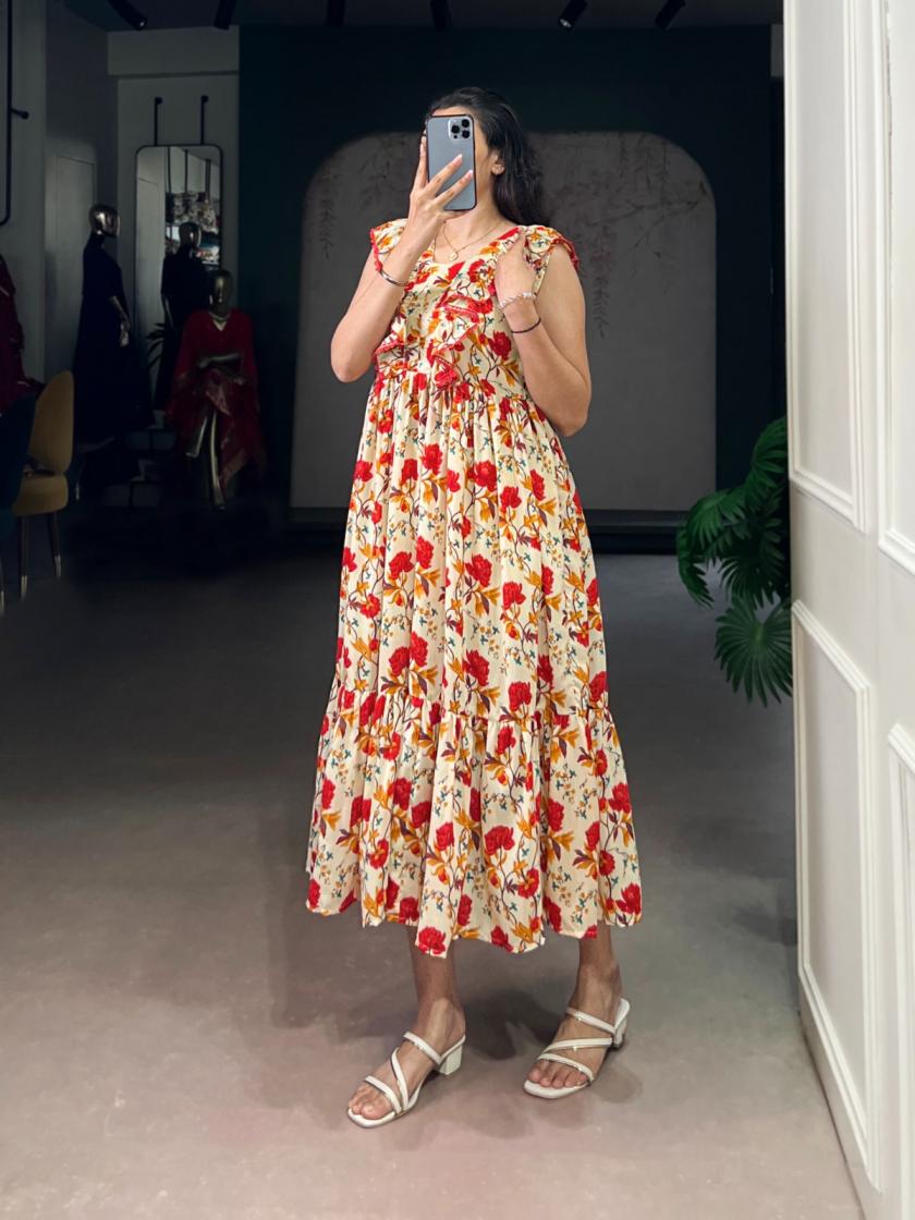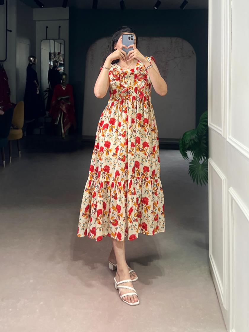 nnk4506 muslin silk floral print readymade pretty long kurtis online