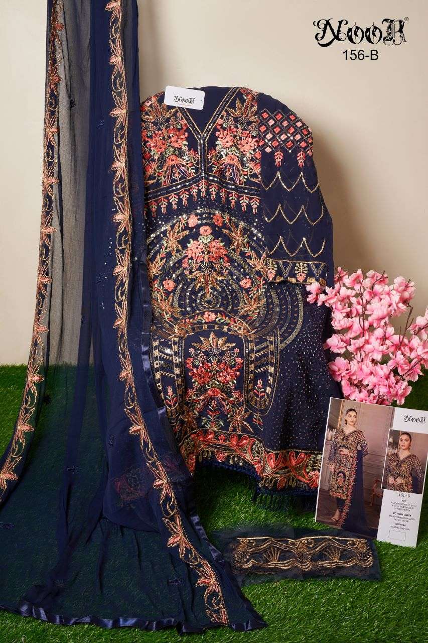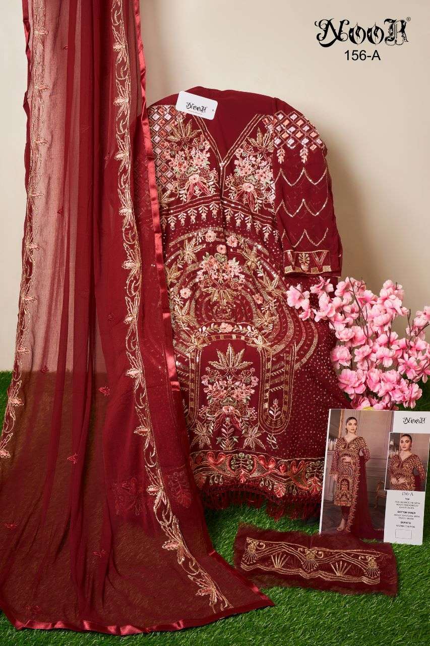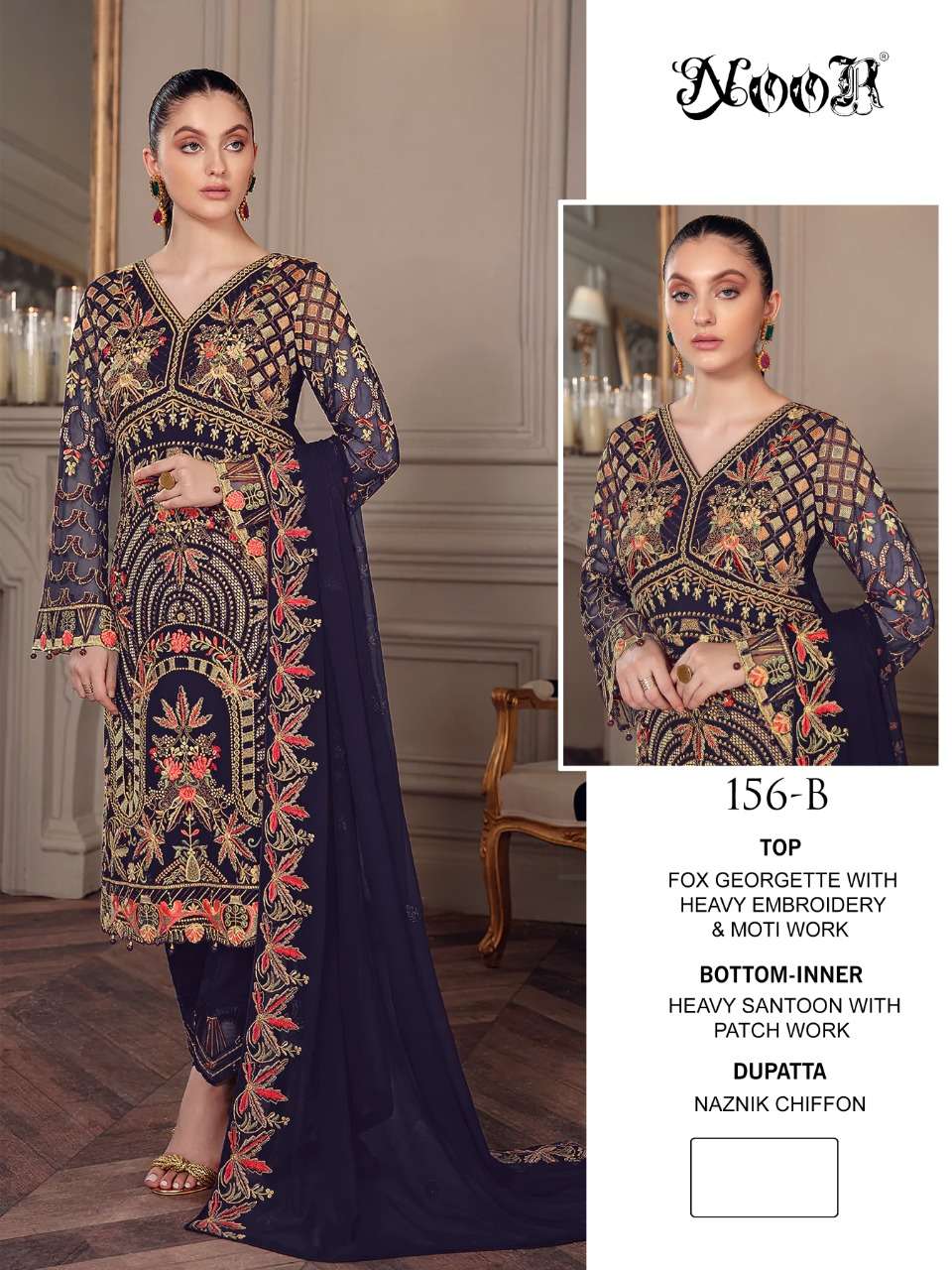 NOOR DNO- 156 TOP- GEORGETTE WITH EMBROIDERY DUPATTA -NAZMEEN BOTTOM - SANTOON-WITH PATCH-WORK RATE = 1099/- |