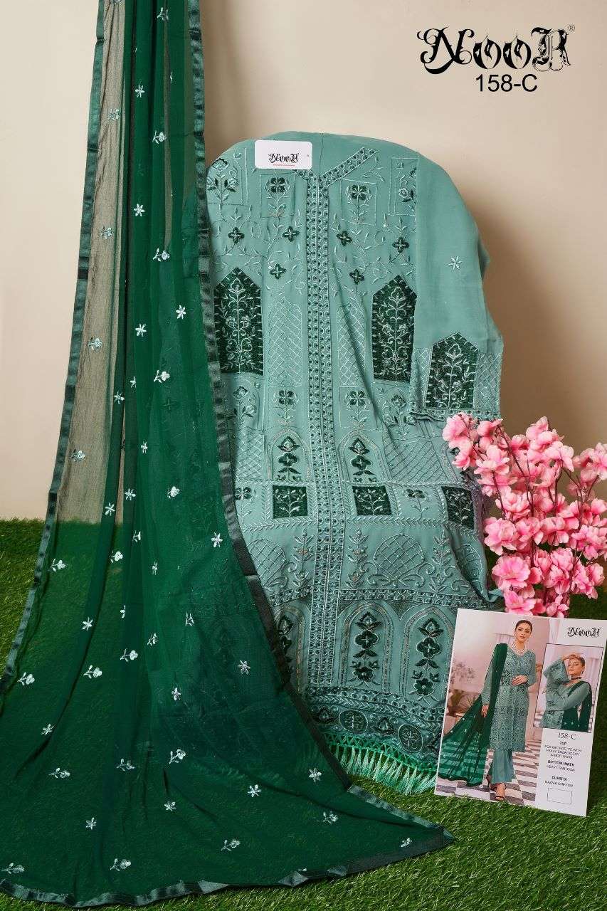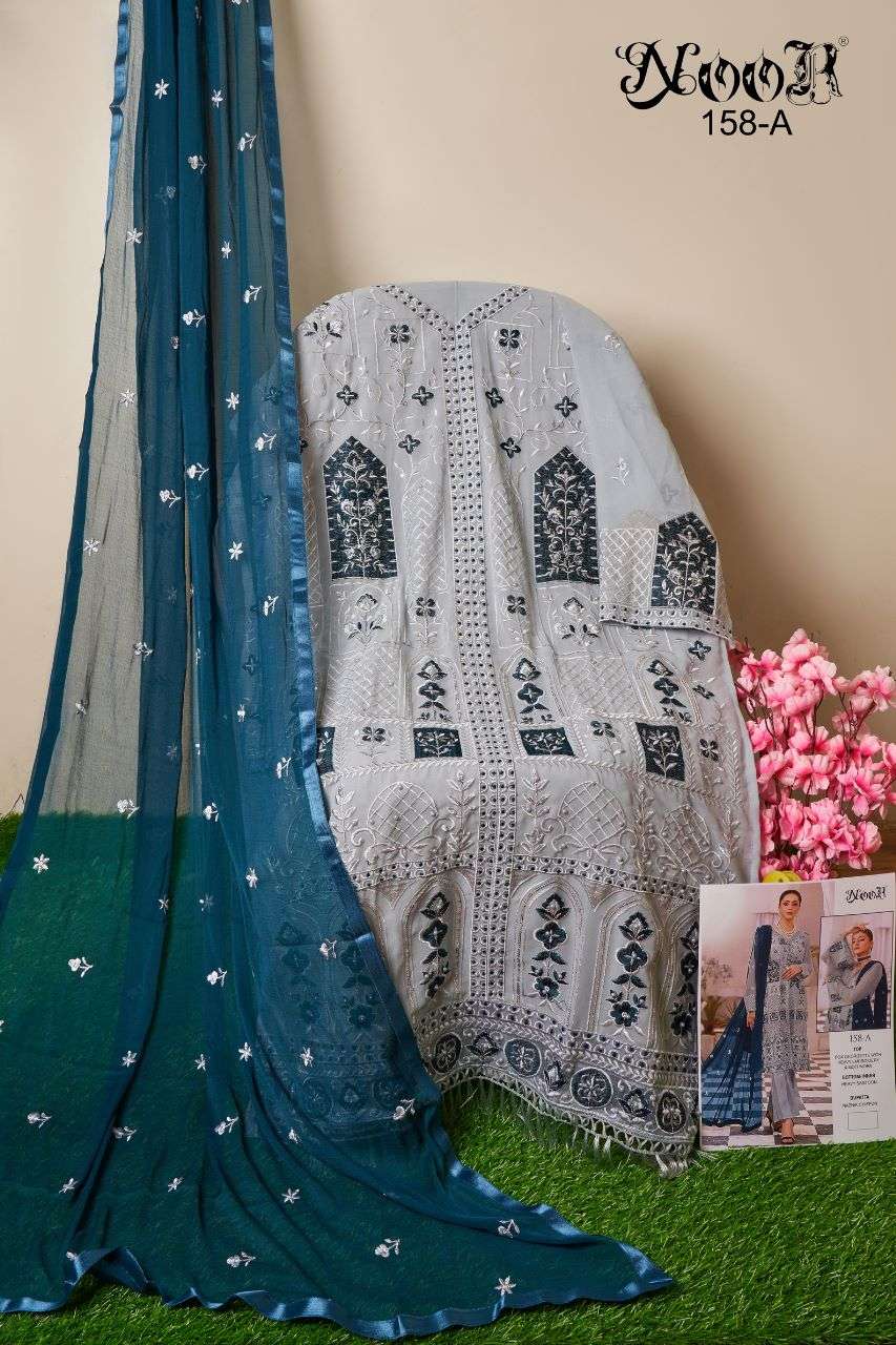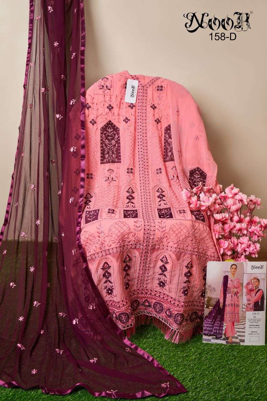 NOOR DNO- 158 TOP- GEORGETTE WITH EMBROIDERY DUPATTA -NAZMEEN BOTTOM - SANTOON-WITH PATCH-WORK RATE = 1099/- |