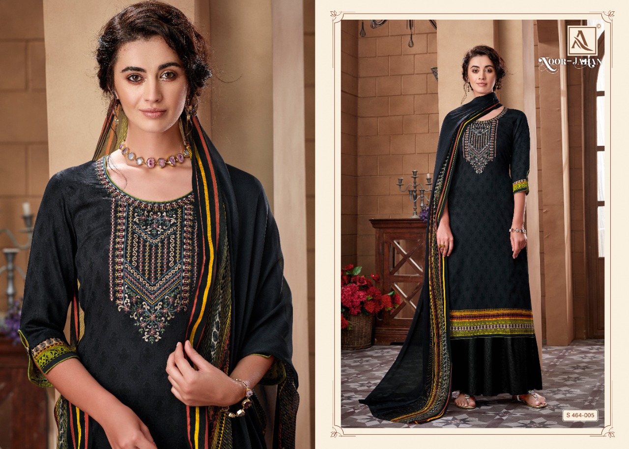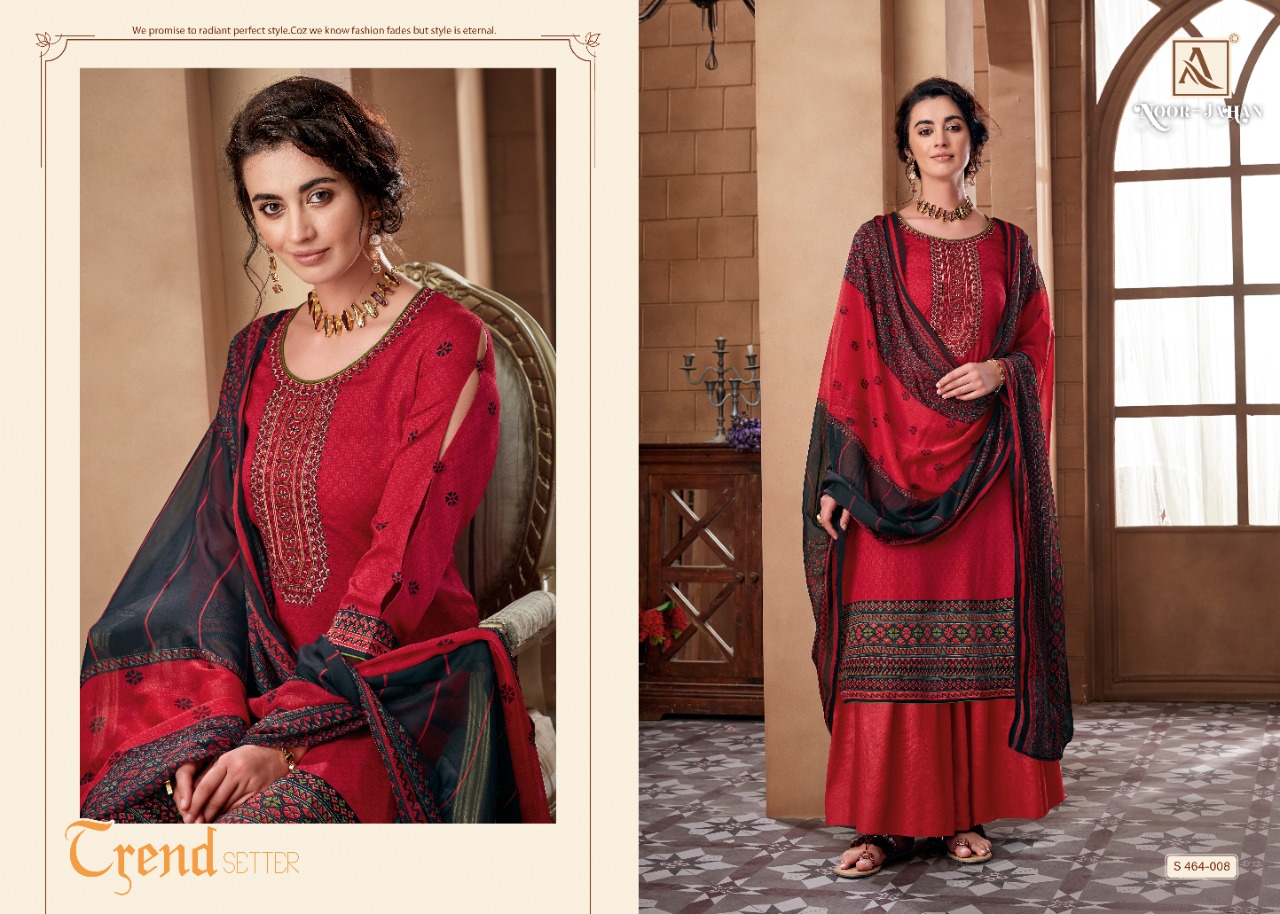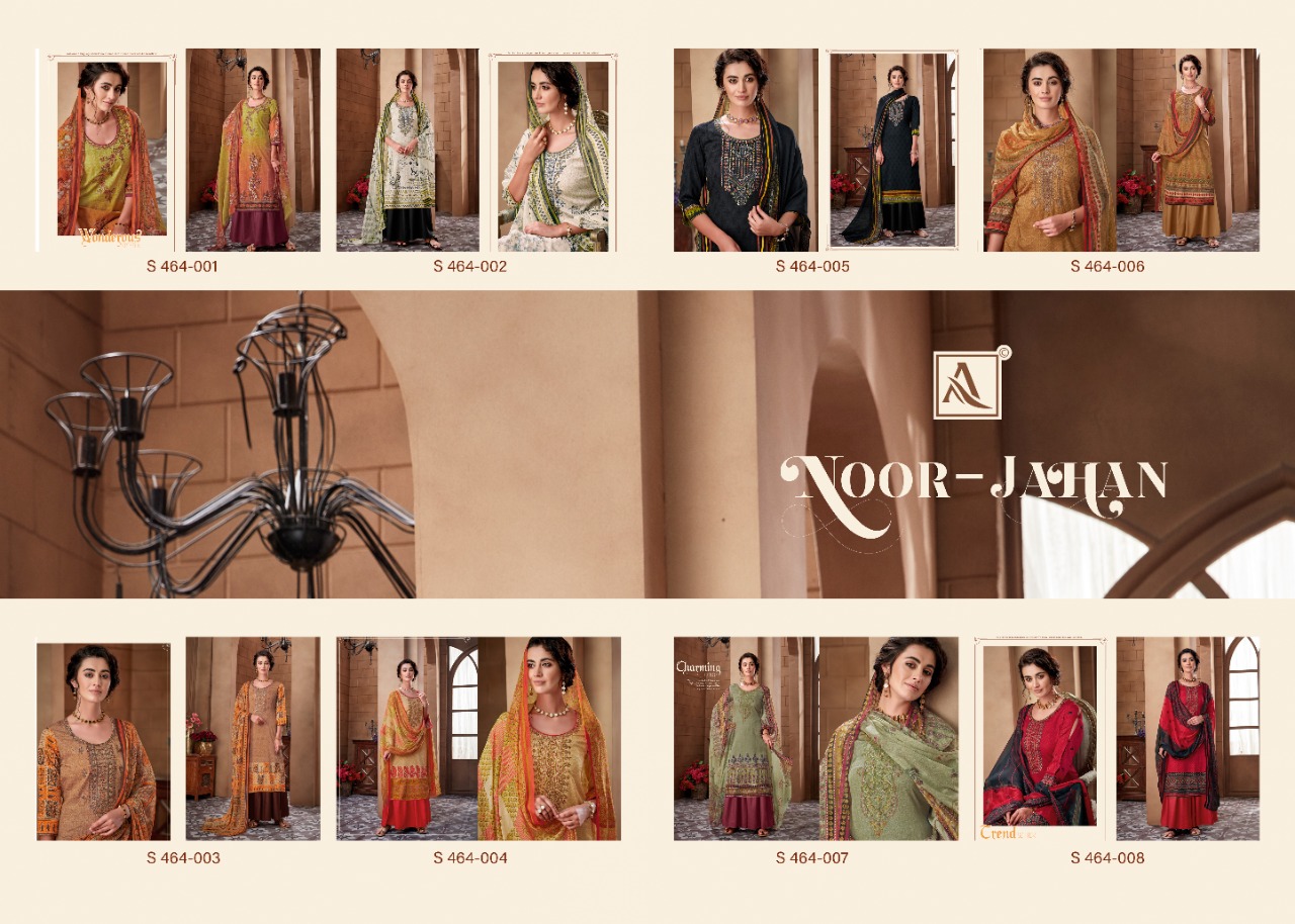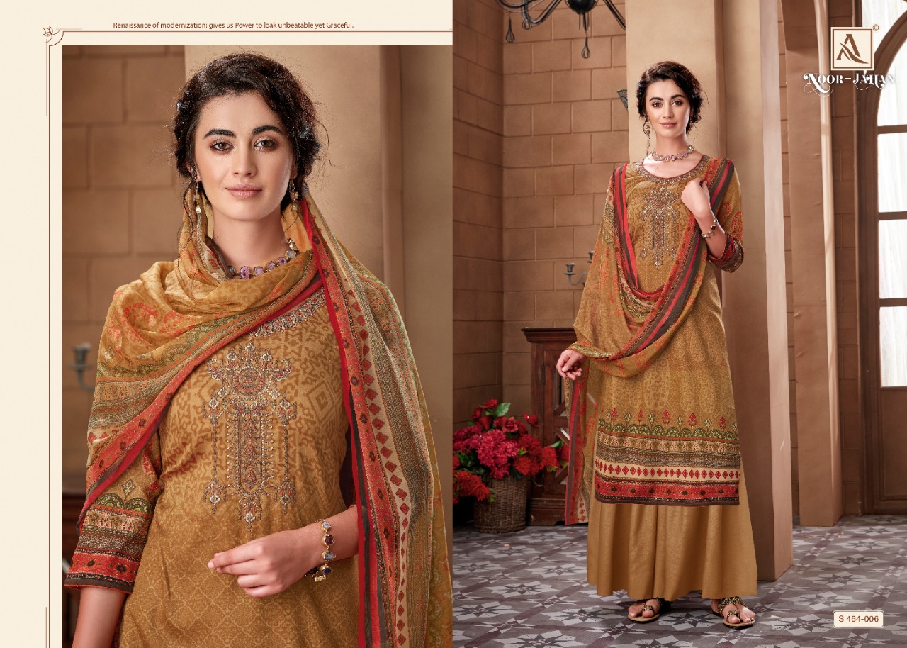 ALOK SUIT NOOR-JAHAN - Incredible Printed Collection Here Alok Suit presents a very fresh Printed collection - NOOR-JAHAN. Fabric Details: Top: Pure Loan Cotton Digital Print with Fancy Thread Embroidery & Swarovski Work Bottom: Pure Cotton Solid Dupatta: Pure Chiffon Digital Style Fancy Print The single set of dresses contains: 8⃣Pcs Really affordable rate: ₹5⃣8⃣5⃣ + 5⃣% GST |