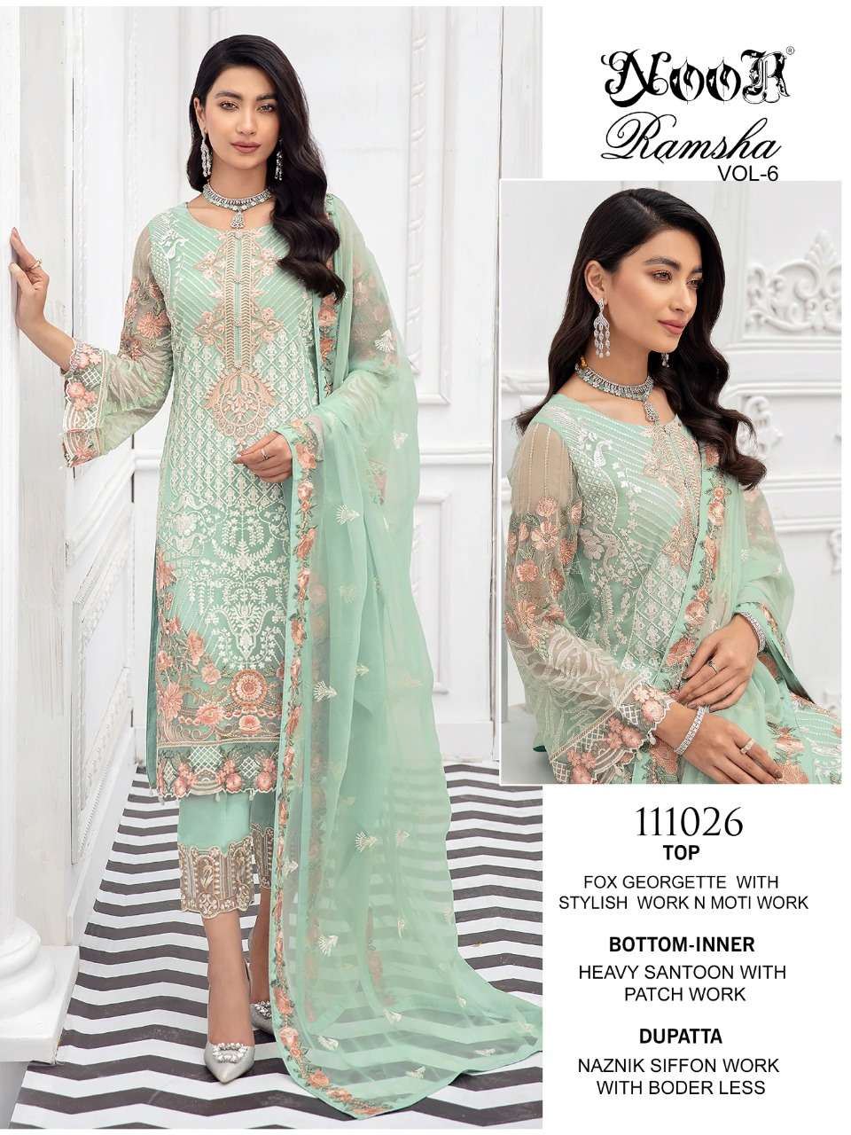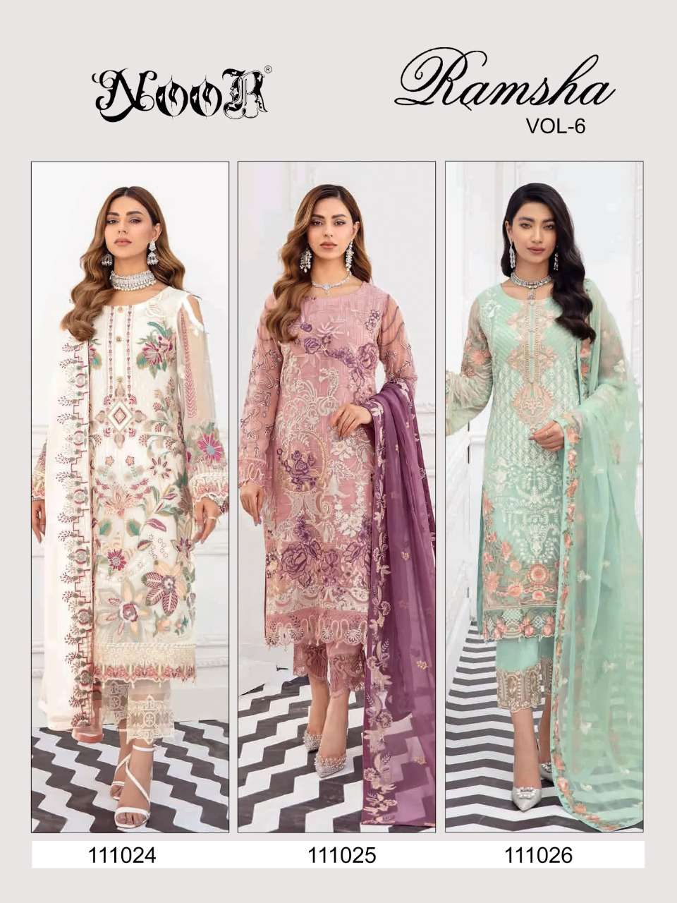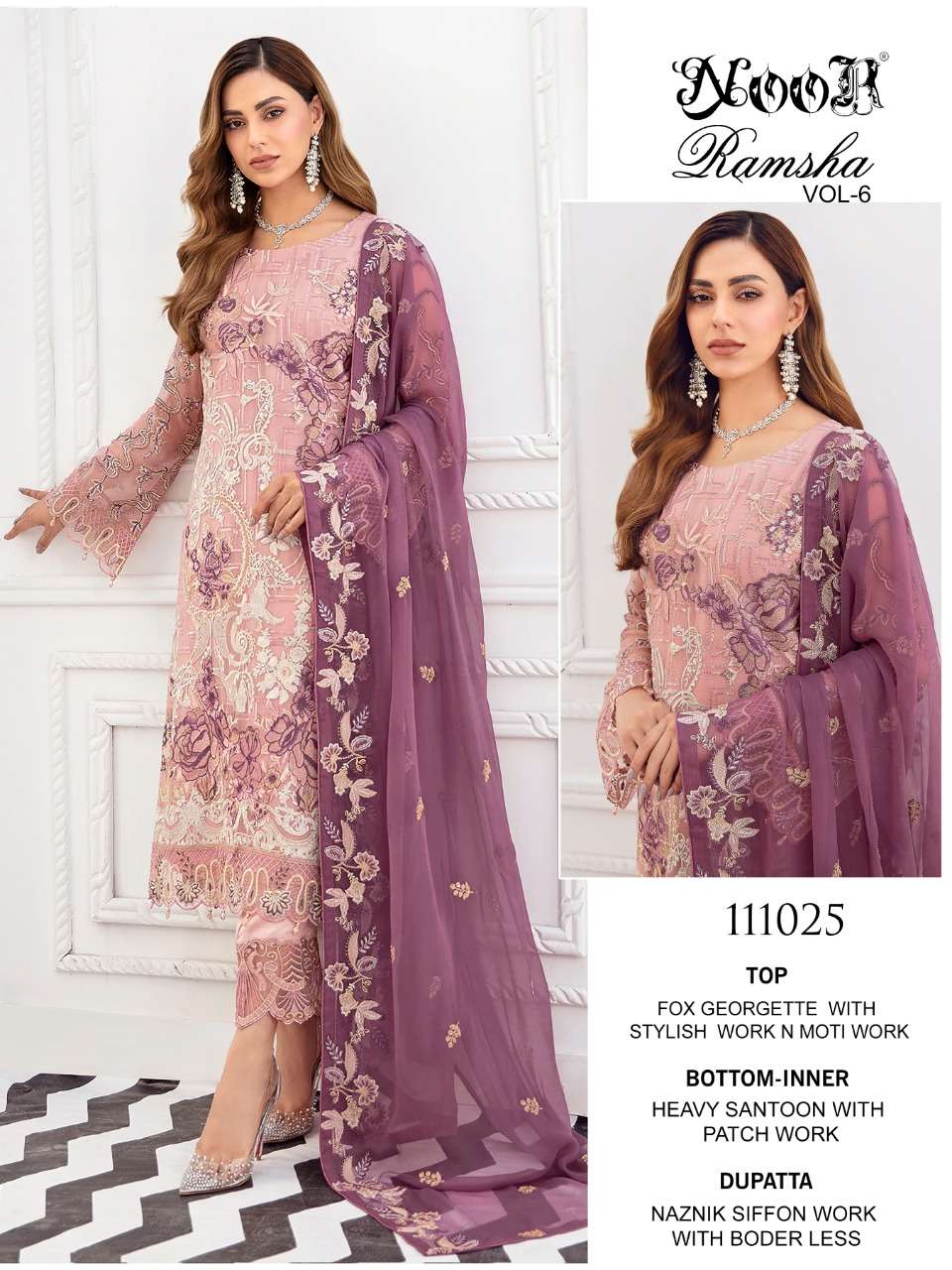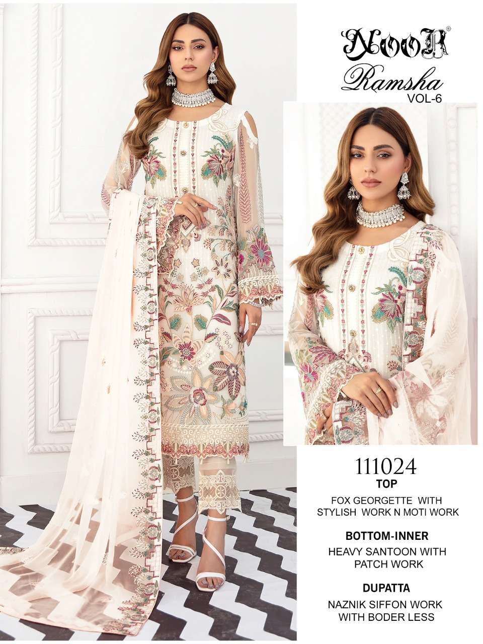 🙏🏻Dear 💕 NOOR Ramsha vol_6🌲 👇🏻Fabric details 👇🏻 👗 Top : Greogette/ Netwith Heavy Embroidery 👖Bottom inner- Dul Shantun with patch work 🔺Dupatta : Naznik siffon EMBROIDERY n BODER