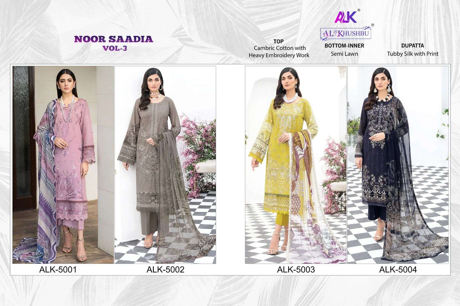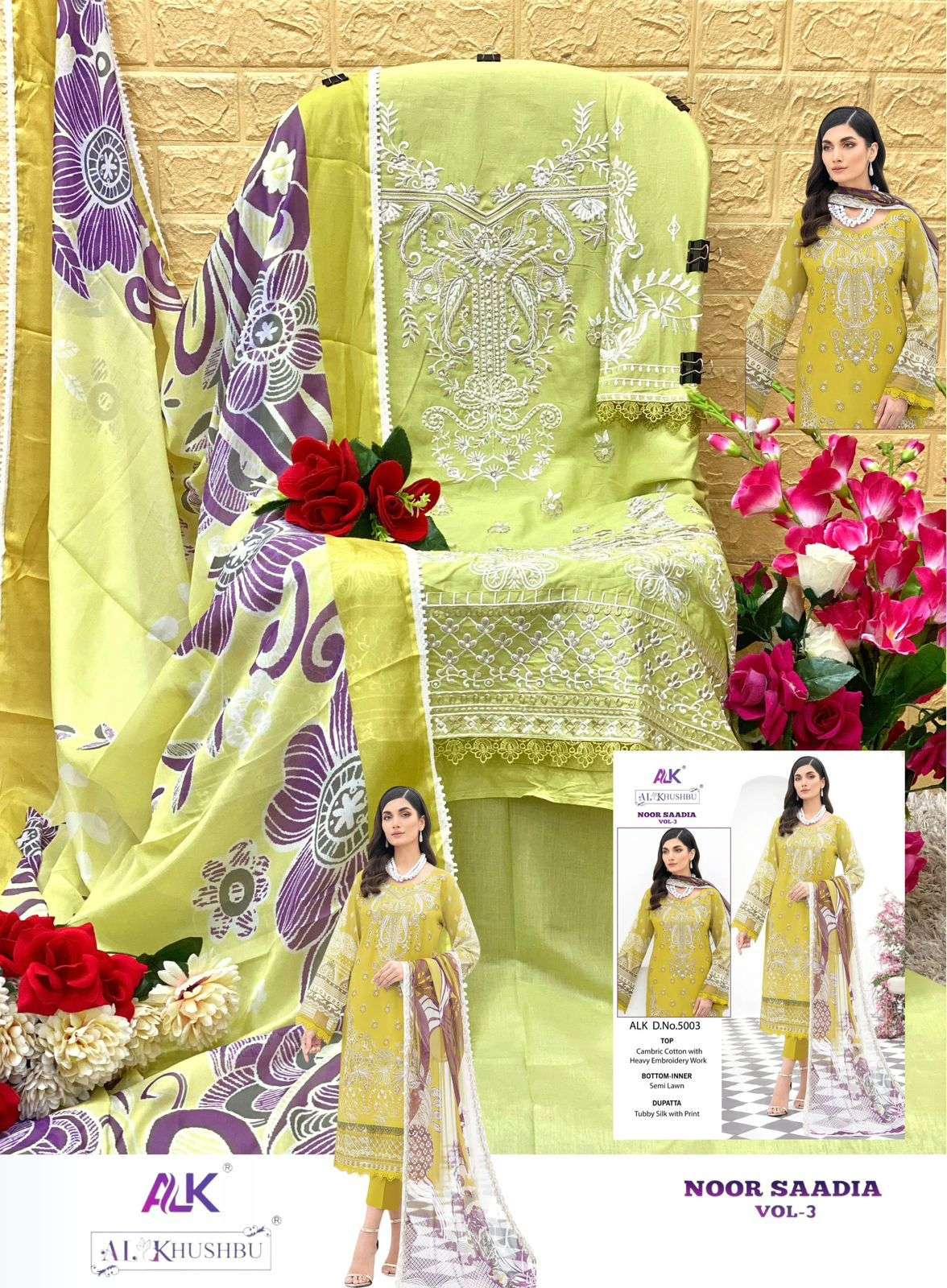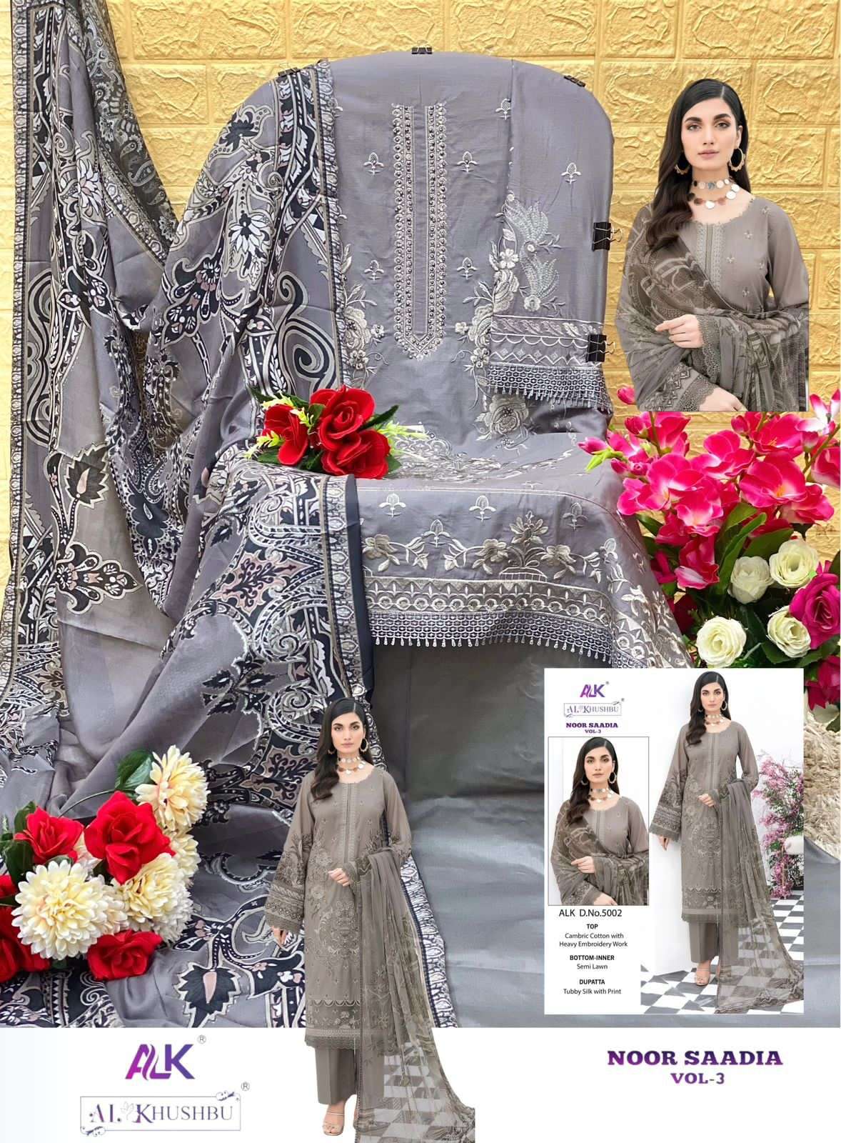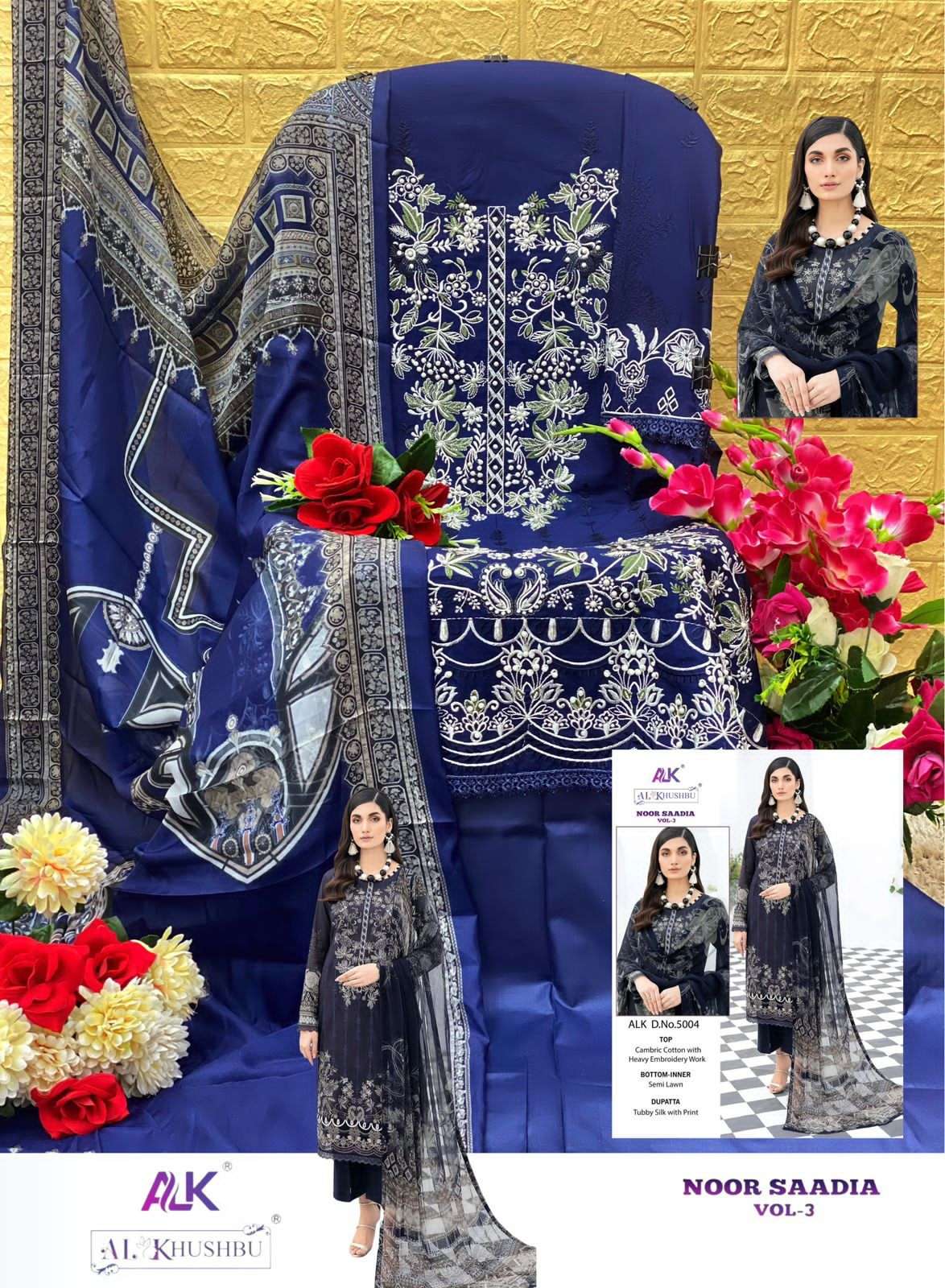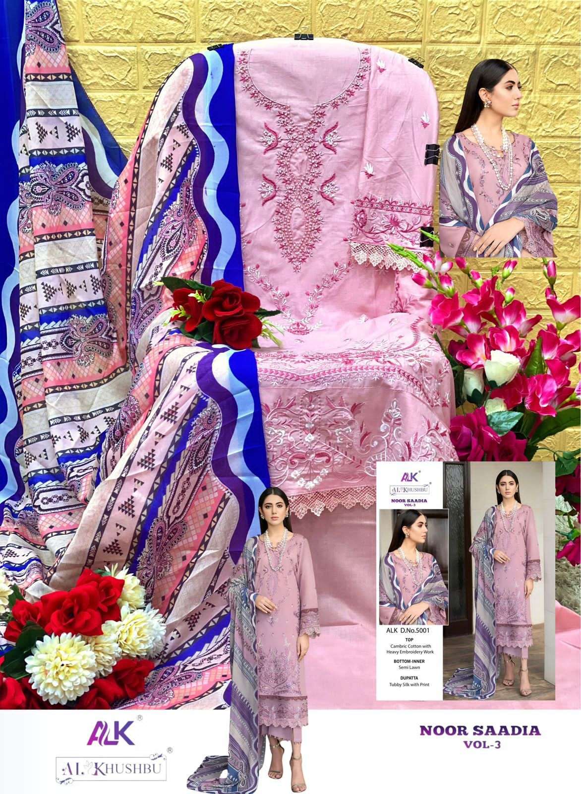 noor saadia vol 3 by al khushbu heavy designer work pakistani salwar kameez material