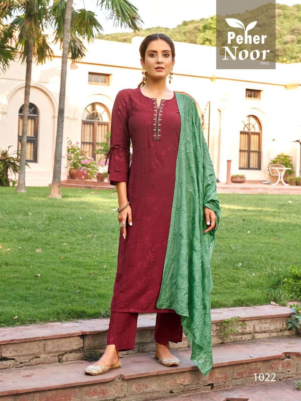Vivils silk mills Pvt LTD Catlouge Name - NOOR VOL 2 Fabric - BERLIN SILK DUPPATTA - HEAVY SEQUENCE EMBROIDERY PANTS - BERLIN SILK WITH WORK Length - 46 INCHES WORK - EMBROIDERY WITH HANDWORK Price - 1195 /- + GST Quantity - 6 PCS |