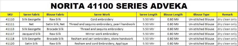 OUR NEW FESTIVE WEAR DESIGNER SAREE COLLECTION ♻️ BRAND NAME : MAHOTSAV CATALOG : "NORITA 41100 SERIES ARINYA FABRIC -: ATTACHED BLOUSE TYPE: UN STITCHED |