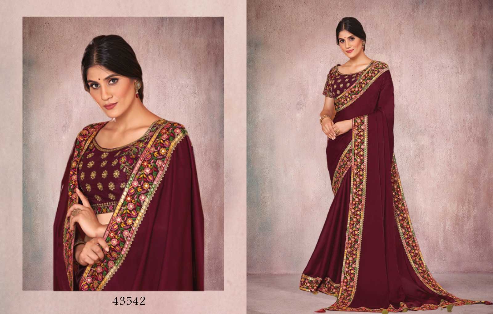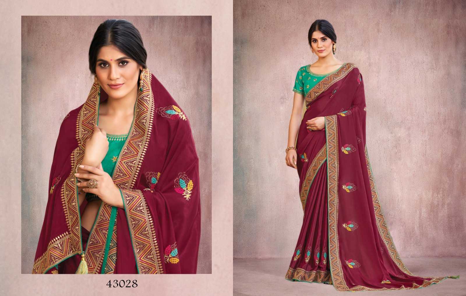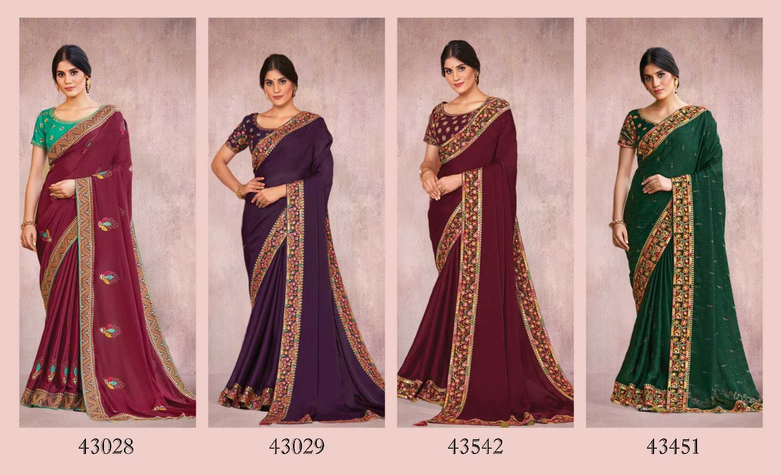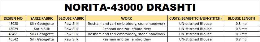 ♻ OUR NEW FESTIVE WEAR TRADITIONAL SAREE COLLECTION ♻️ BRAND NAME : MAHOTSAV CATALOG : "NORITA 43000 DRASHTI PRICE :- FABRIC:- ATTACHED BLOUSE TYPE : UN STITCHED |