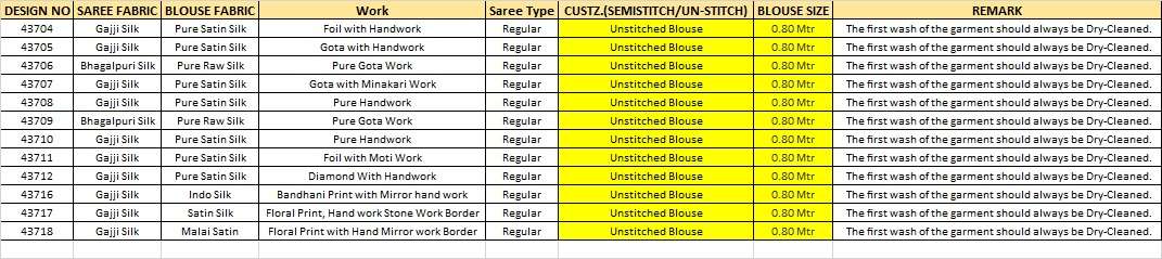 | Note | Stitching available on customer Requirment For Sarees , Salwar Kameez, Lehengha.(i.e M,L,XL,XXL). |