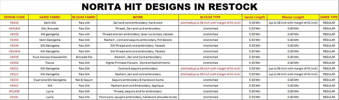 AVAILABILITY: On Booking NORITA HIT SAREE VOL 1