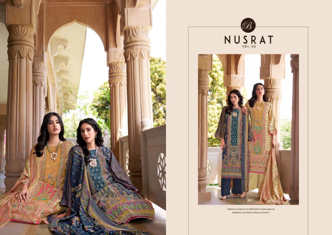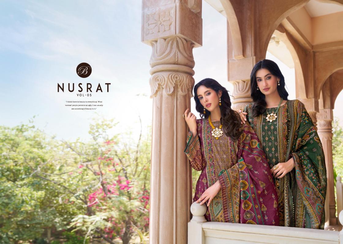 nusrat vol 5 by belliza designer modal viscose muslin pakistani full stitch big size suits
