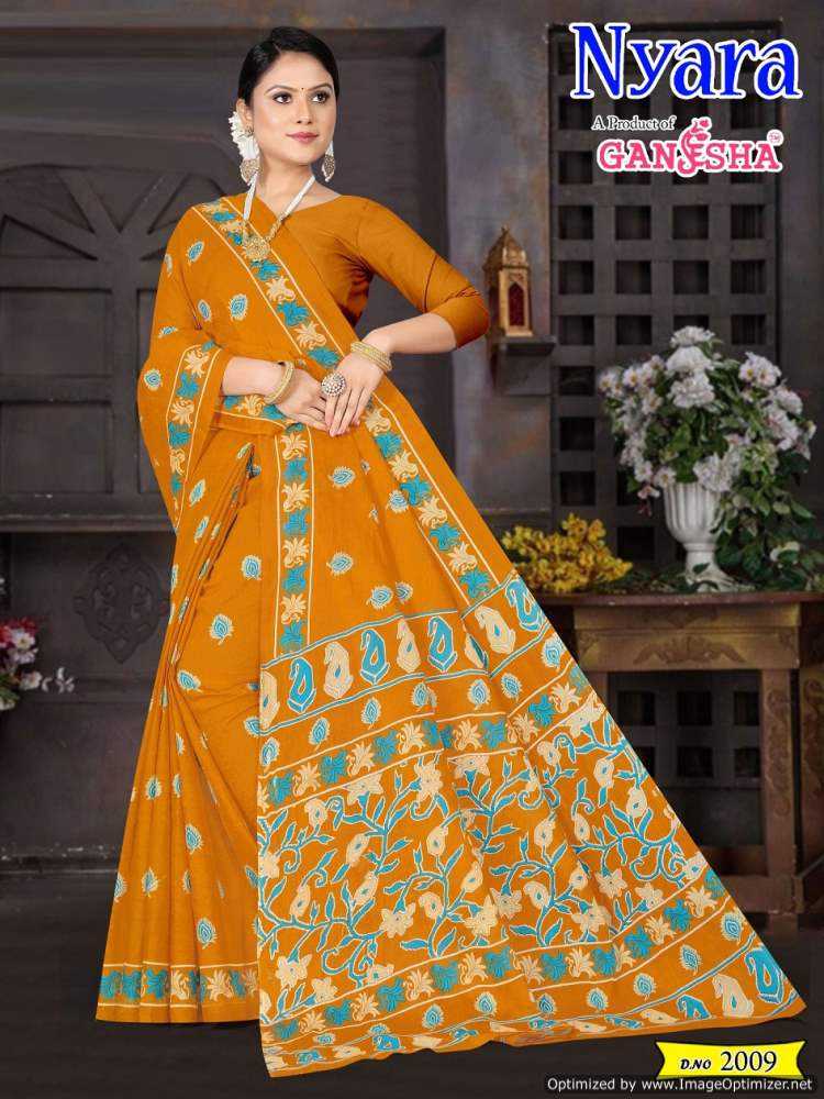 nyara vol 2 by ganesha falak cotton printed sarees catalog