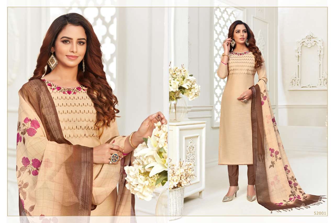 NYSHA Vol-2Â Exclusive digital dupattas and Designer embroidery tops. Top:Â Linen with exclusive viscose embroidery work, 2.40 mtr Dupatta:Â Linen Digital Dupattas with 2.40 mtr Bottom:Â Cotton, 2.50 mtr RATE :-699/-PER PCS Always with you, for you! RAGHAV CREATION |