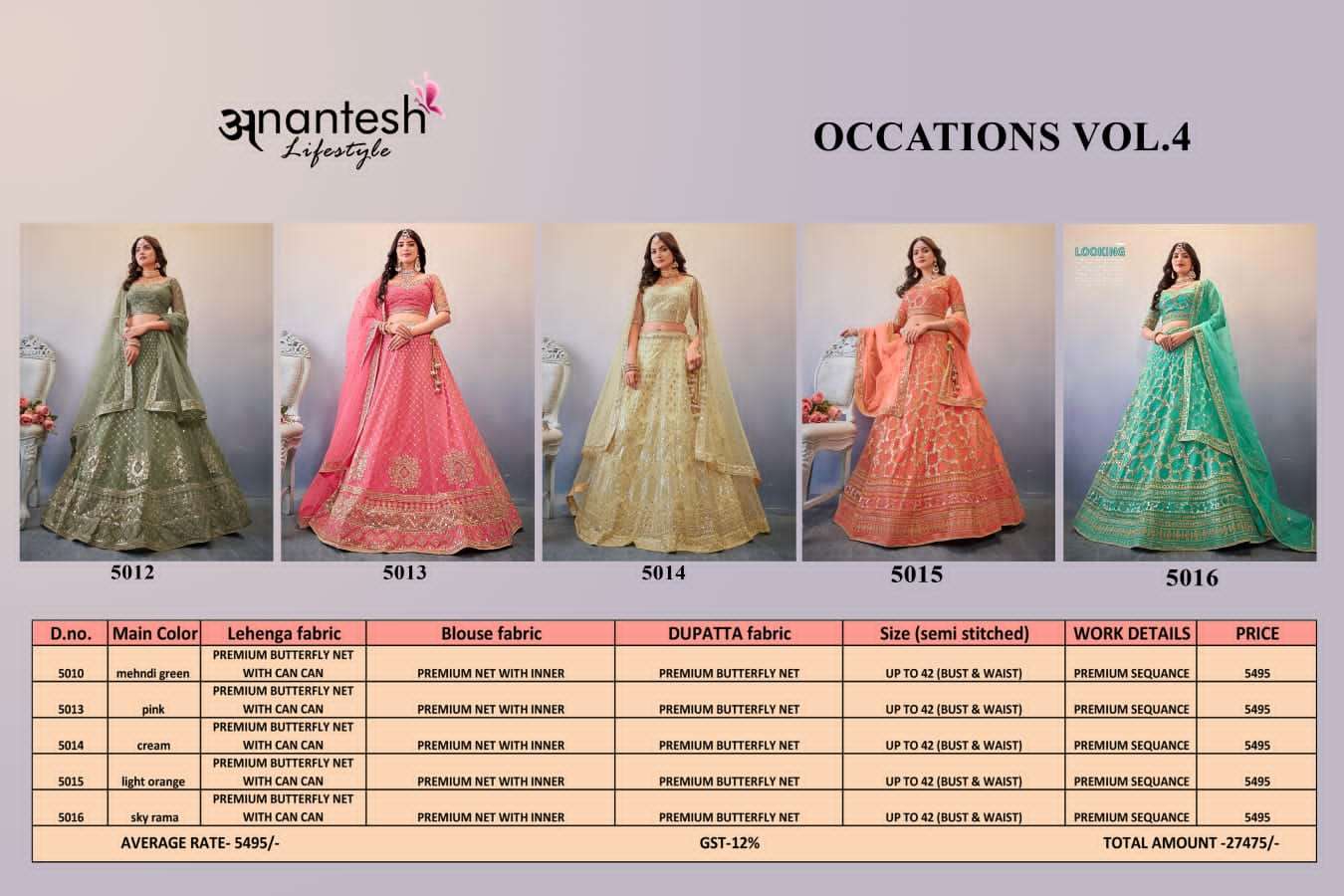 ANANTESH LIFESTYLE ®️ PREMIUM TRENDING WEDDING , OCCASIONS,PARTY WEAR LEHENGA CHOLI IN PREMIUM SEQUENCE CATLOGUE NAME- OCCASIONS VOL 4 SERIES 5012 TO 5016 RATE LIST ATTACHED+ GST 12% FABRIC DETAILS AND PRICE ATTACHED