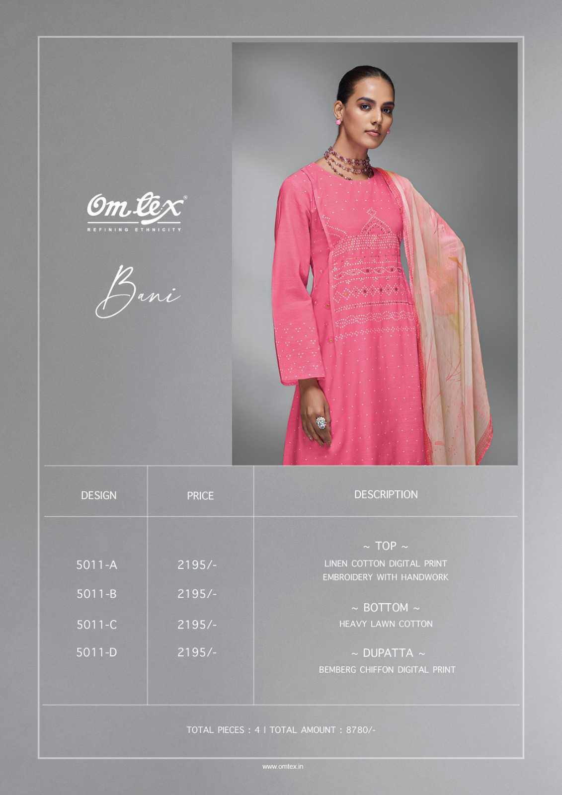 Om Tex Presents Latest Collection Launched on 10-04-2024. Presenting Beautiful collection of 4 PCS with Unstitched .