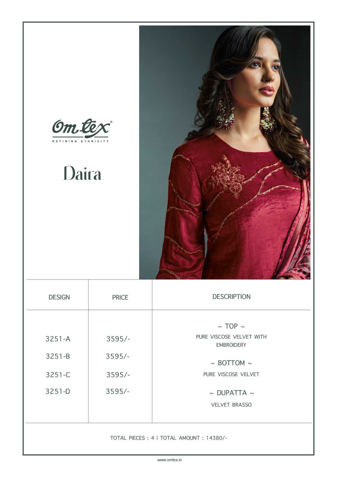 Om Tex Presents Latest Collection Launched on 04-12-2023. Presenting Beautiful collection of 4 PCS with Unstitched .