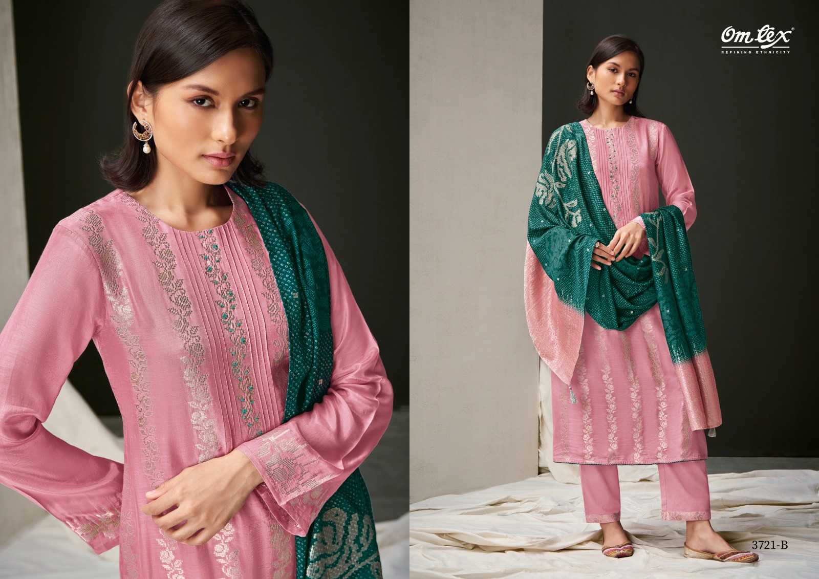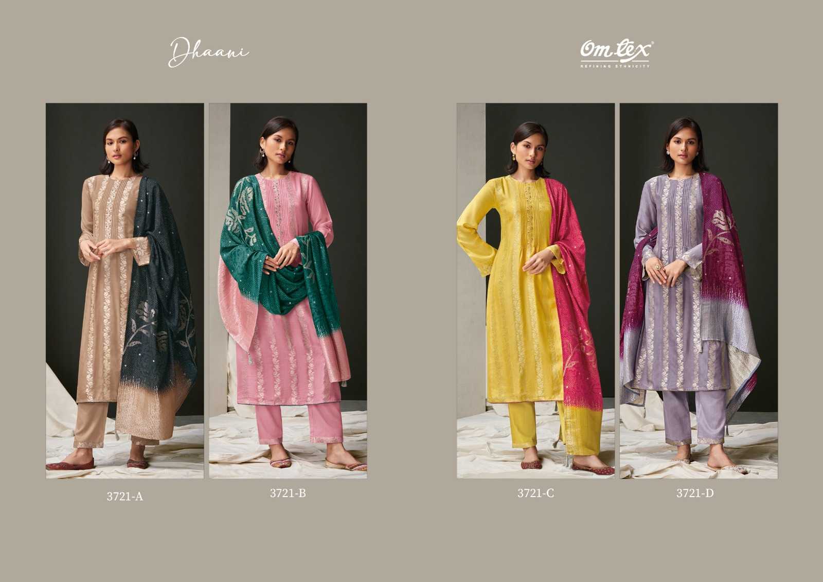 omtex dhaani amazing silk jacquard salwar kameez with digital print dupatta