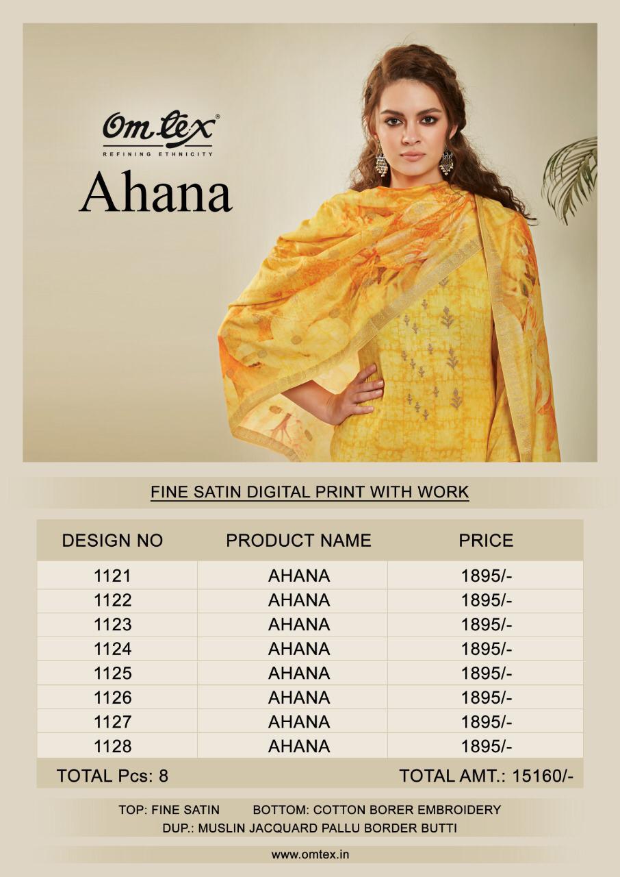 Omtex Launch Ahana Satin Digital 1121-1128 Series Salwar Suit Supplier