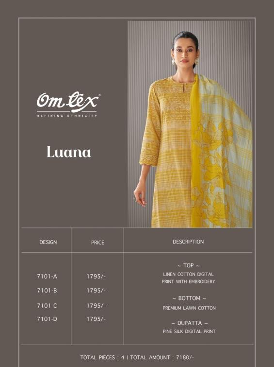 Om Tex Presents Latest Collection Launched on 18-02-2025. Presenting Beautiful collection of 4 PCS with Unstitched .