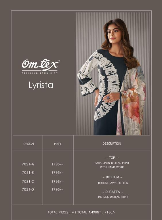 Om Tex Presents Latest Collection Launched on 23-04-2025. Presenting Beautiful collection of 4 PCS with Unstitched .