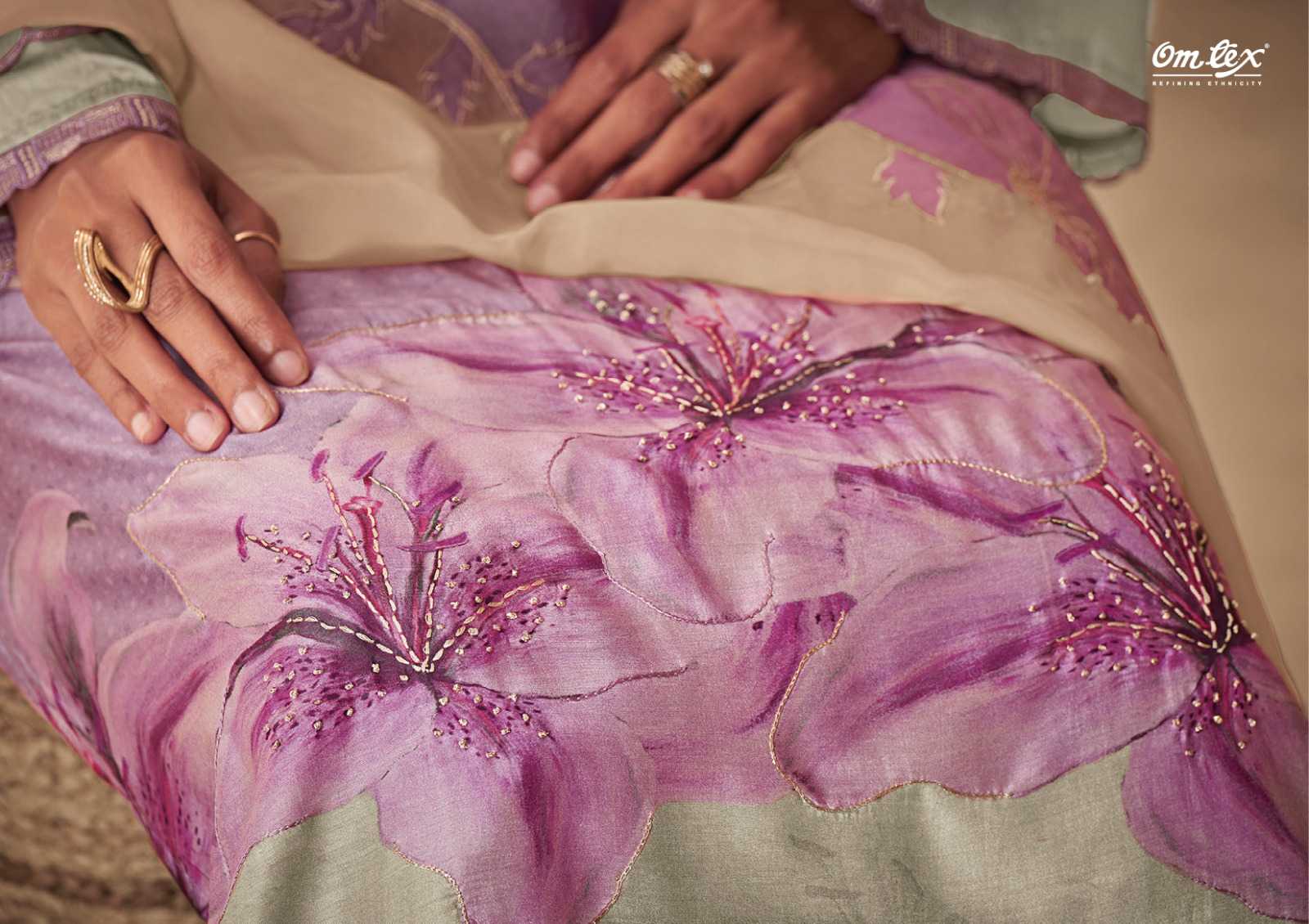 omtex mehaanshi beautiful silk fabric with digital print handwork dress material