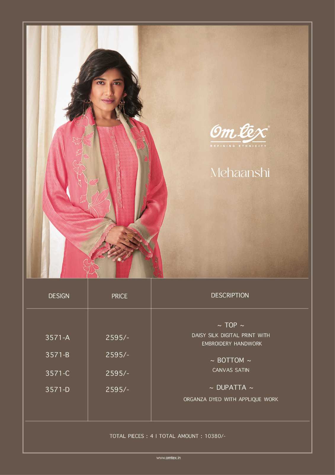 Om Tex Presents Latest Collection Launched on 12-03-2024. Presenting Beautiful collection of 4 PCS with Unstitched .