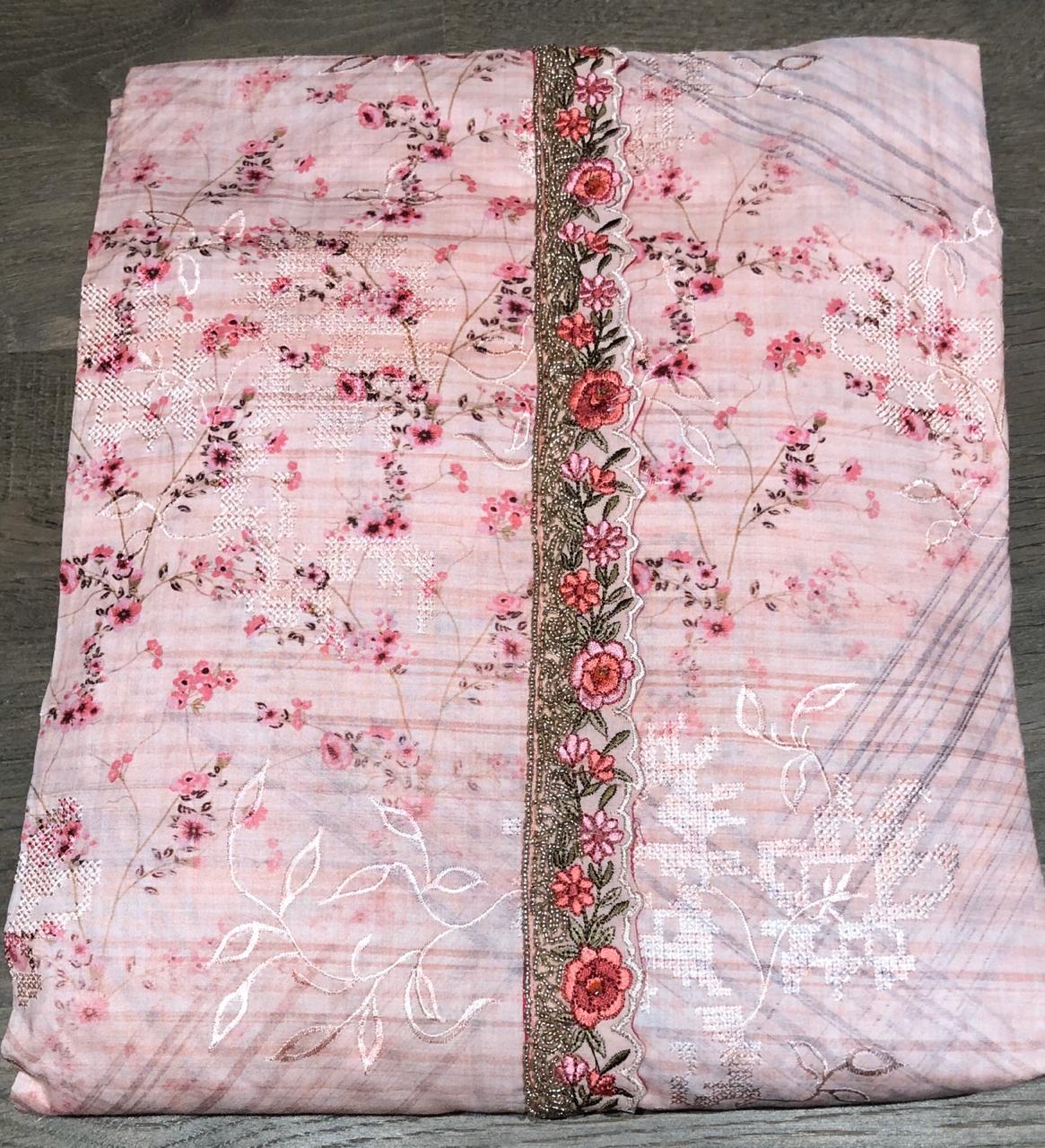 OMTEX Presents - MUSE TOP Pure lawn cotton cross stitch embroidery with digital print and hand work BOTTOM Pure cotton DUPATTA Pure malmal cotton RATE 1595₹ 5%GST APPLICABLE SET TO SET DELIVERY 2-3 DAYS |
