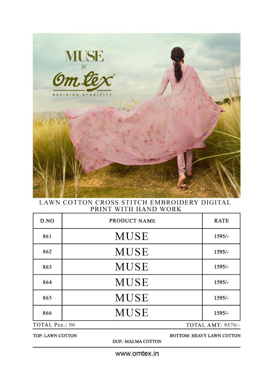 Omtex Muse 861-866 Series Lawn Cotton Cross Stitch Embroidered Suits