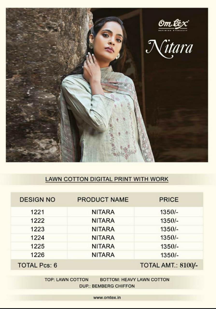 Omtex Nitara Lawn Cotton Digital Print 1221-1226 Series Designer Suit Wholesaler