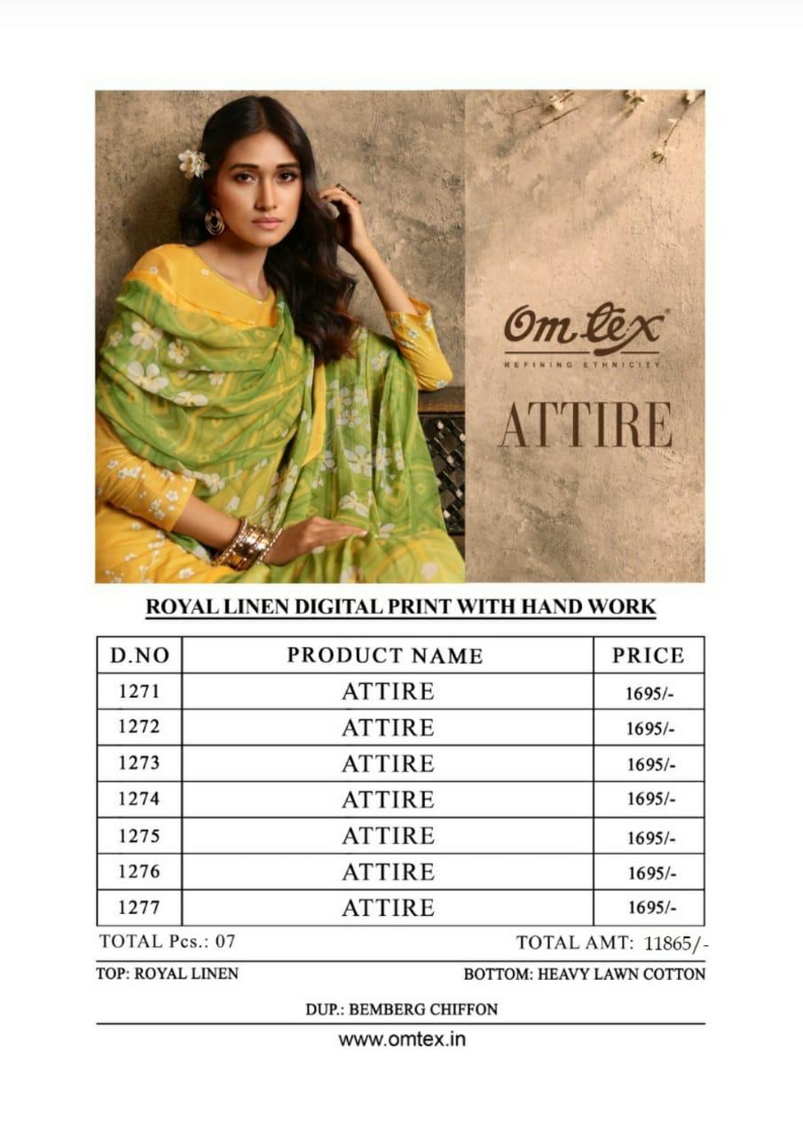 OMTEX Presents - ATTIRE TOP-ROYAL LINEN DIGITAL PRINT WITH HAND WORK BOTTOM-HEAVY LAWN COTTON DUPATTA-BEMBERG CHIFFON RATE-1695₹ |