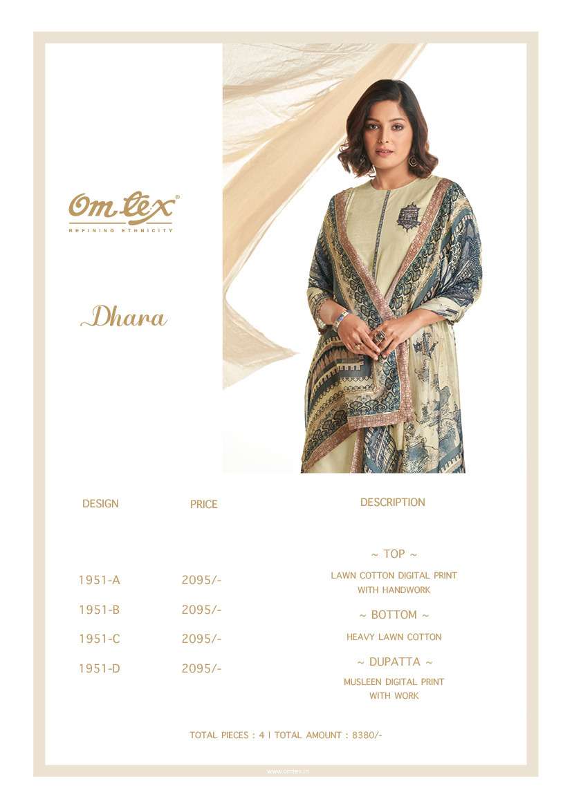 Om Tex Presents Latest Collection Launched on 10-05-2023. Presenting Beautiful collection of 4 PCS with Unstitched .